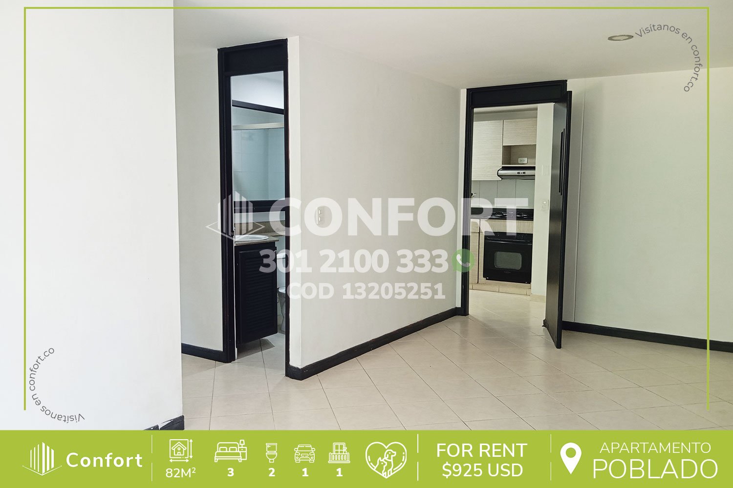 Canon de renta $3.600.000 COP o, $925 USD