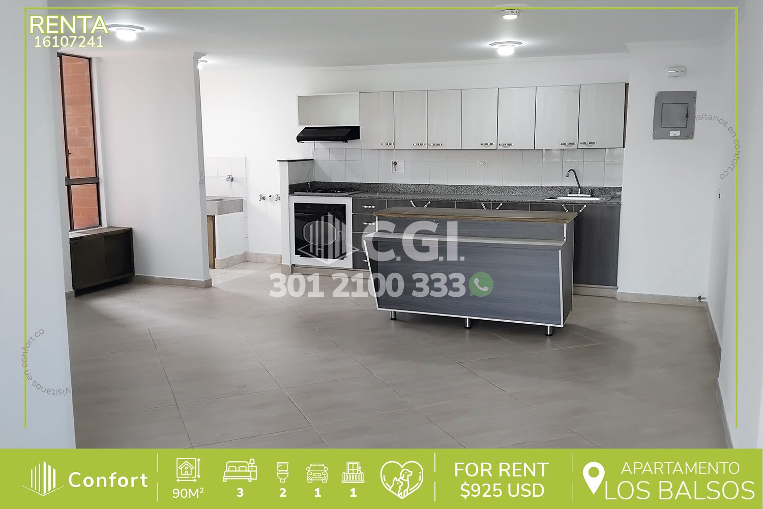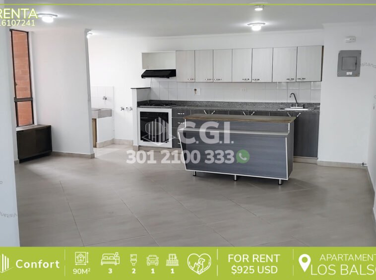 161-07-241 Inmobiliaria en Medellín arrienda apartamento ubicado en el sector de Los Balsos en El Poblado, una zona tranquila y segura para vivir; este inmueble cuenta con un área de 90mts2 distribuidos en sala comedor, cocina integral, zona de ropas, 3 habitaciones, de las cuales la principal cuenta con baño y vestier, baño social y parqueadero. Ubicado en edificio con seguridad 24/7 y zonas comunes tales como salón social, gimnasio, turco y zona infantil, donde a su alrededor podemos encontrar el Centro Comercial Santafé, Centro Comercial Oviedo, Carulla y museo El Castillo, con vías de acceso por avenida El Poblado, avenida Las Vegas y avenida regional, cuenta demás con diversas rutas de transporte público. CONFORT GESTORES INMOBILIARIOS – Arriendo en El Poblado