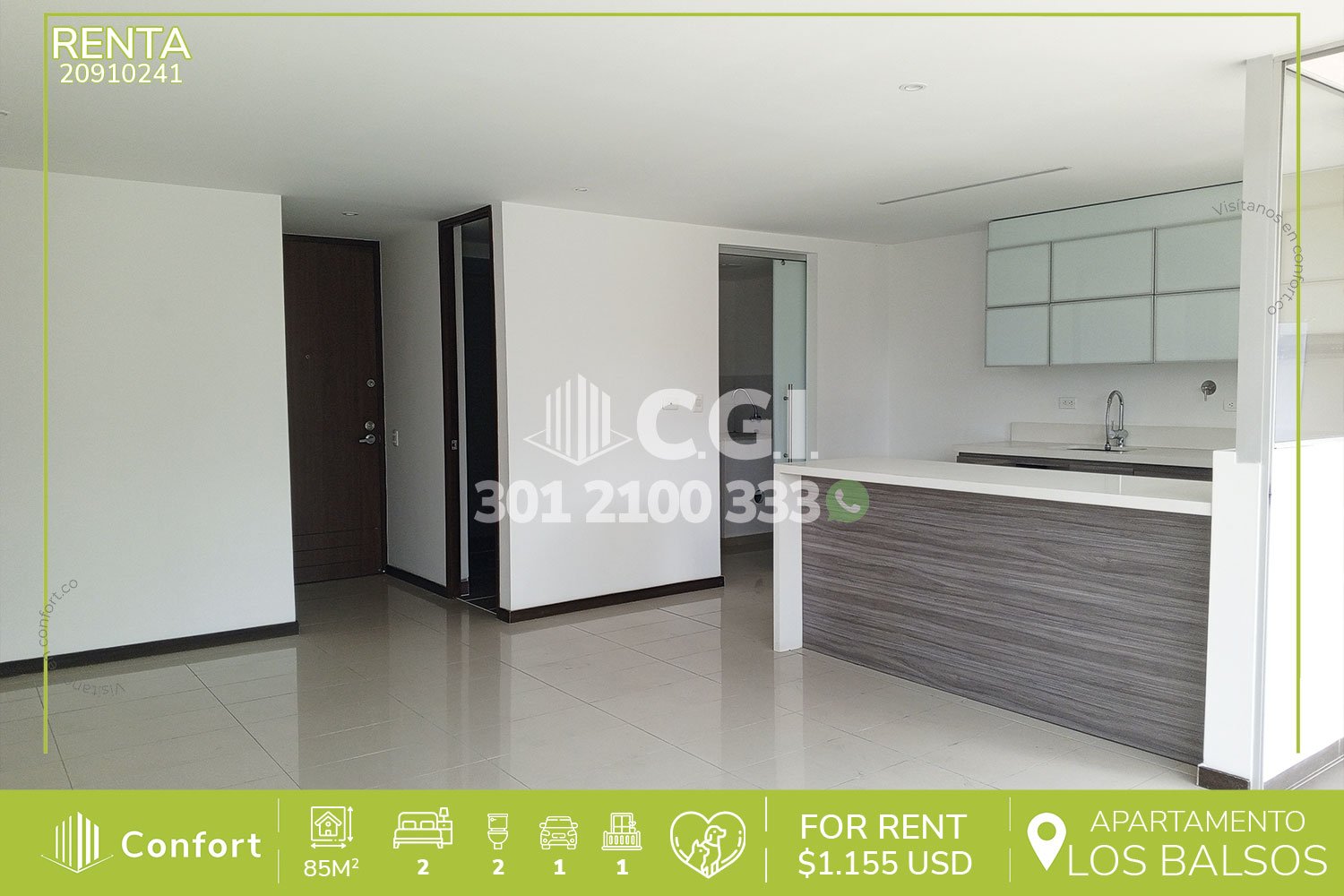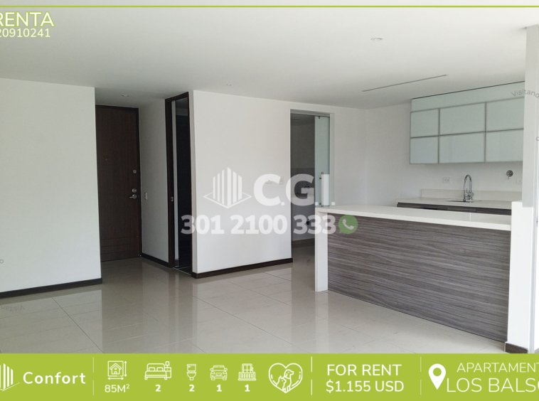 209-10-241 Inmobiliaria en Medellín arrienda apartamento ubicado en tranquilo de Los Balsos en El Poblado, cuenta con un área de 85mt2 distribuidos en sala de muy buen tamaño, cocina integral con barra americana, zona de ropas, balcón, 2 habitaciones, una de ellas con baño privado y vestier, la otra con clóset, baño social, parqueadero y cuarto útil. Ubicado en unidad con seguridad 24/7 y con zonas comunes como piscina de adultos, gimnasio, parque infantil, cancha de microfútbol y zonas verdes, a su alrededor podemos encontrar el centro comercial Santafé y el parque de El Poblado, con rutas de acceso por las avenidas El Poblado, Regional, Las Vegas y gran variedad de rutas de transporte público. CONFORT GESTORES INMOBILIARIOS – Arriendo en El Poblado