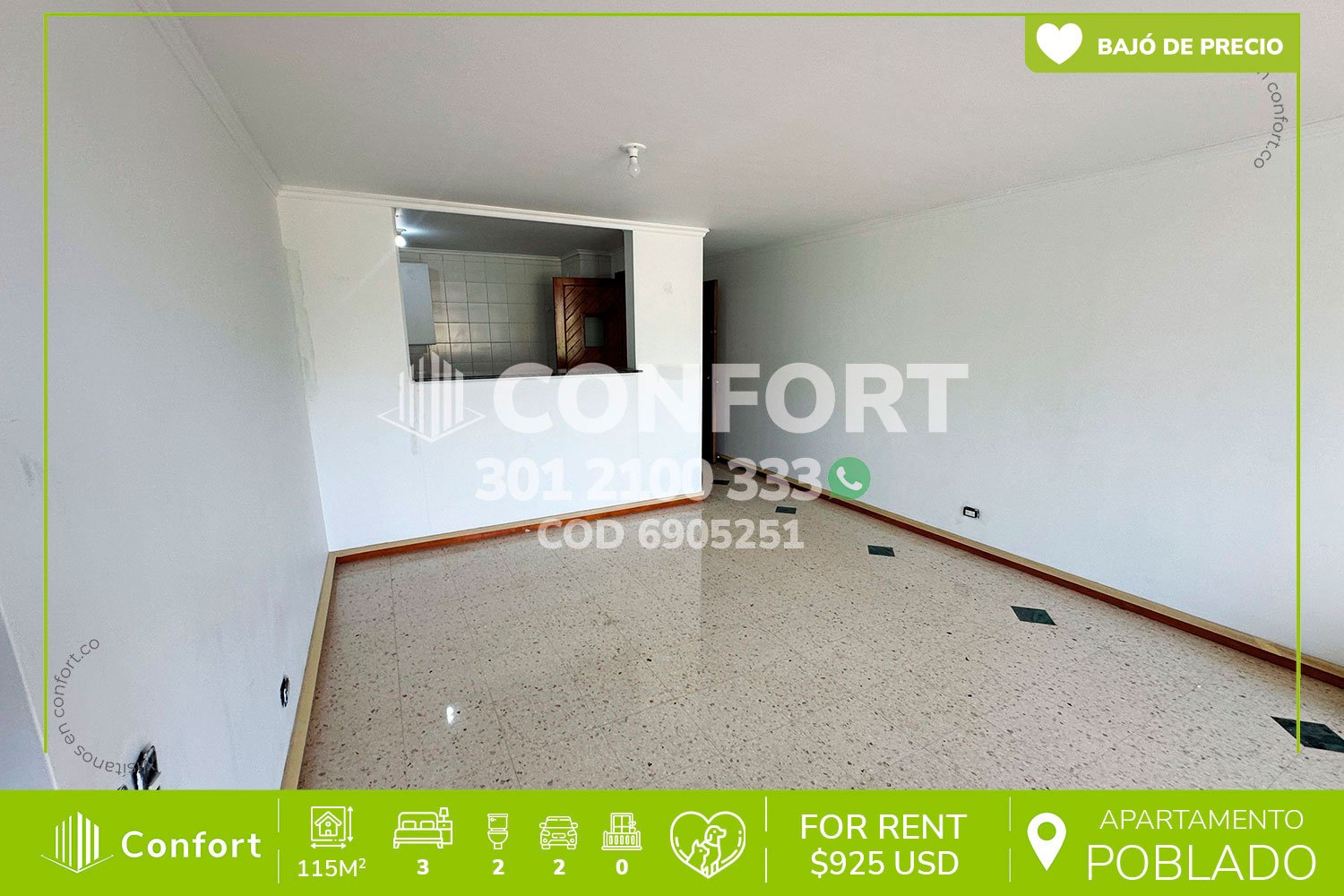 Canon de renta $3.600.000 COP o, $925 USD