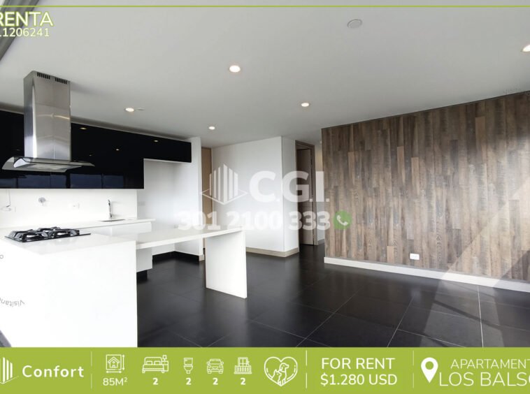 112-06-241 Exclusivo apartamento disponible para la renta ubicado en excelente sector de Los Balsos en El Poblado, cuenta con un área de 85mt2 distribuidos en sala comedor espaciosa e iluminada, cocina integral moderna con concepto abierto integra al área social, zona de ropas independiente, 2 habitaciones de excelente tamaño, la habitación principal cuenta con balcón, vestier y baño privado, adicional podemos encontrar, un baño social y amplio balcón con una vista unida tipo panorámica, 2 parqueaderos y cuarto útil. Ubicado en edificio con seguridad 24/7 y zonas comunes como gimnasio y jacuzzi. A su alrededor podemos encontrar el Colegio Pinares, Centro Comercial Santafé y Club Campestre, vías de acceso por Avenida El Poblado, Los Balsos y gran variedad de transporte público. CONFORT GESTORES INMOBILIARIOS – Arriendo en El Poblado