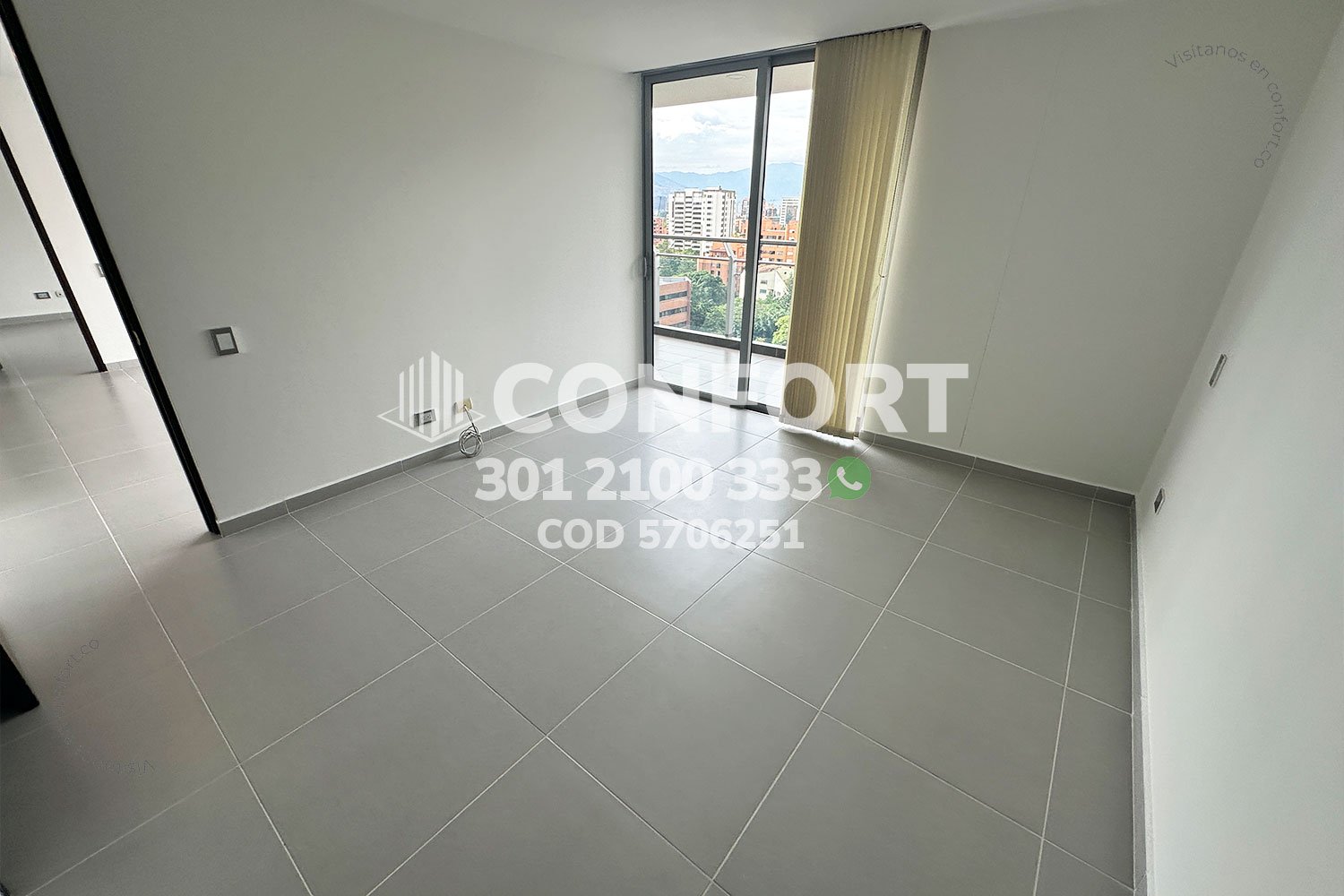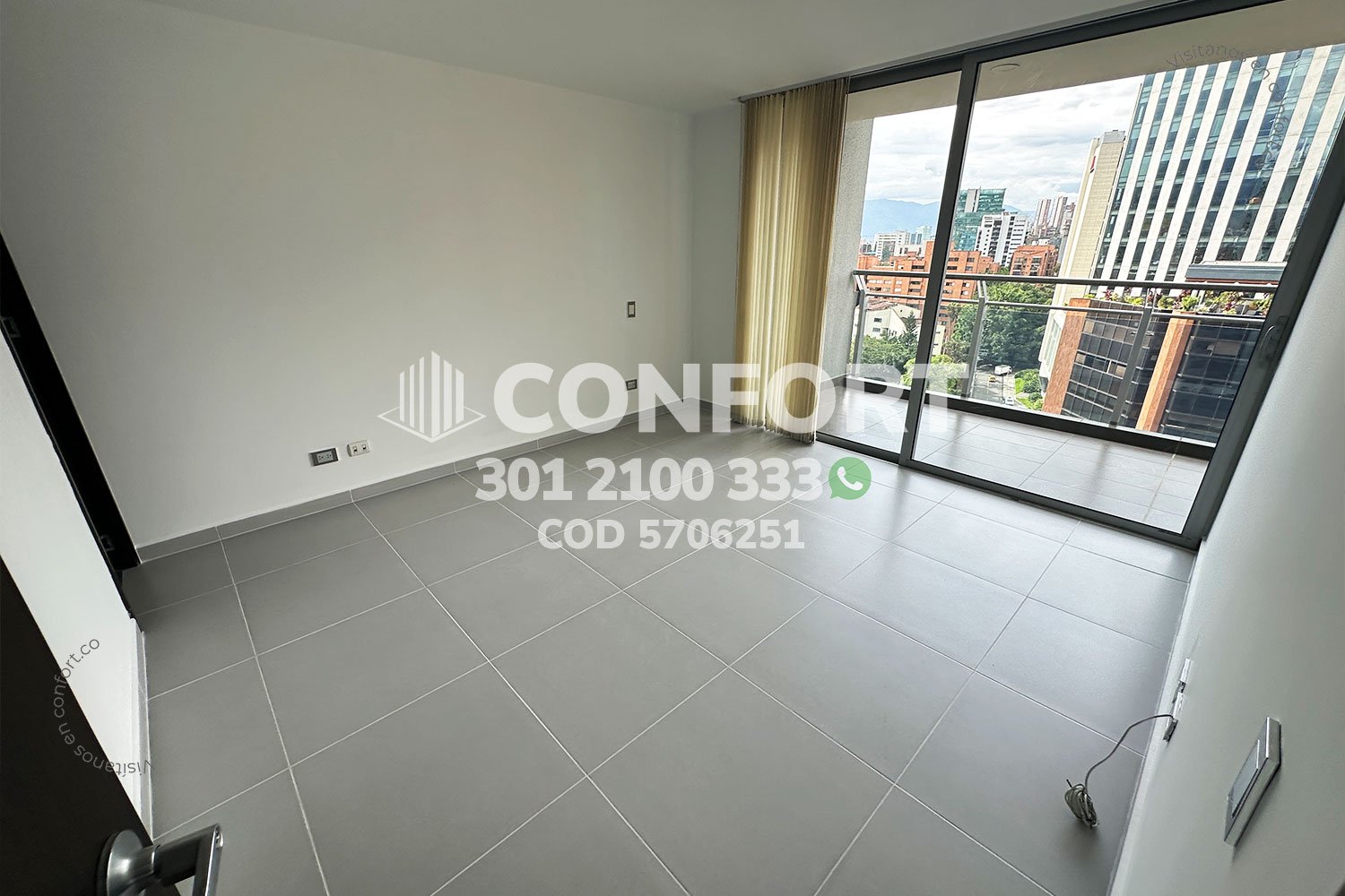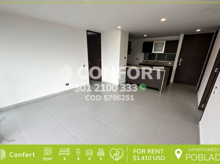 57-06-251 Inmobiliaria en Medellín arrienda apartamento ubicado en el sector de Milla de Oro en El Poblado, cuenta con un área de 90mt2 distribuidos en sala comedor, cocina integral con barra americana, balcón con conexión a toda la propiedad, zona de ropas, 2 habitaciones con vestier y baño privado, y además, cuenta con 2 parqueaderos. Ubicado en edificio con seguridad privada 24/7, donde a su alrededor podemos encontrar Milla de oro, San Fernando Plaza y el centro comercial Oviedo, con vías de acceso por las avenidas El Poblado, Las Vegas y gran variedad de transporte público. CONFORT GESTORES INMOBILIARIOS – Arriendo en El Poblado