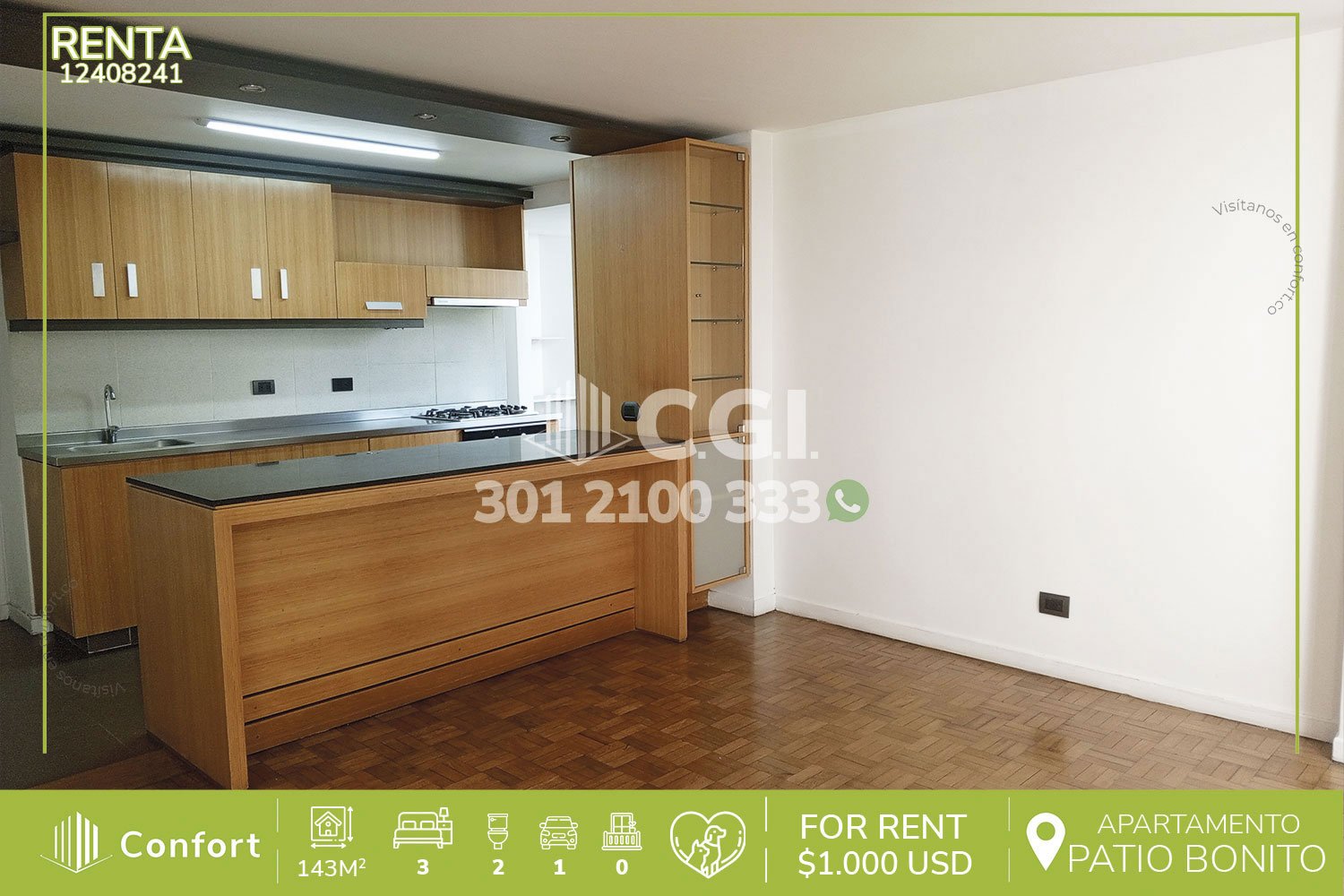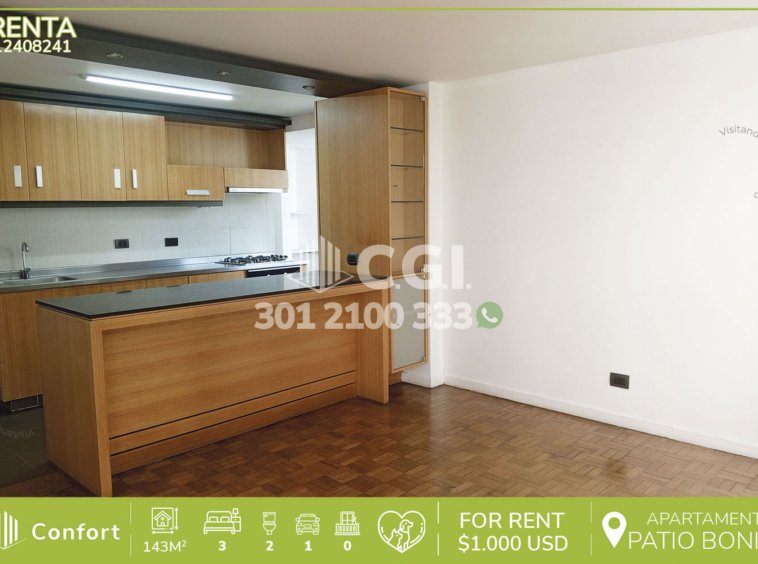 124-08-241 Inmobiliaria en Medellín arrienda acogedor apartamento ubicado en exclusivo sector Patio Bonito en El Poblado, el cual cuenta con 143mst2 distribuidos en sala comedor espaciosa, cocina integral, 3 habitaciones, 2 de ellas con clóset y otra con vestier y baño privado, baño social, habitación de servicio con su respectivo baño privado y parqueadero privado. Ubicado en unidad cerrada con seguridad privada 24/7, donde podemos encontrar rutas de acceso como avenida El Poblado, avenida Las Vegas, Hotel Dann Carlton, torre Almagran y una amplia variedad de rutas de transporte. CONFORT GESTORES INMOBILIARIOS – Arriendo en El Poblado