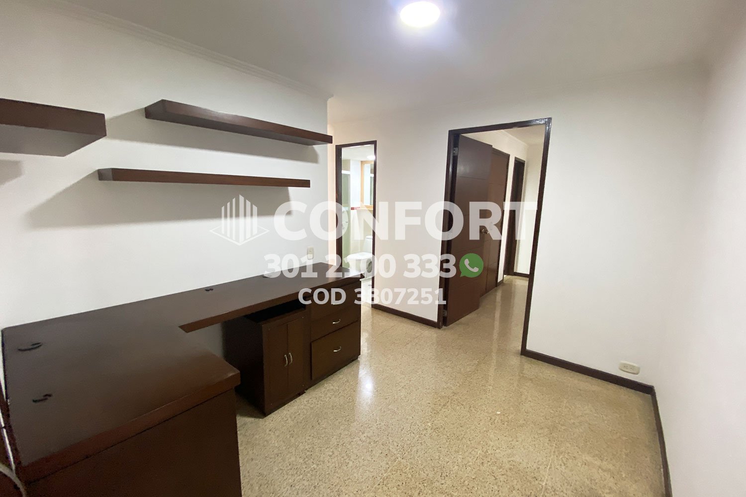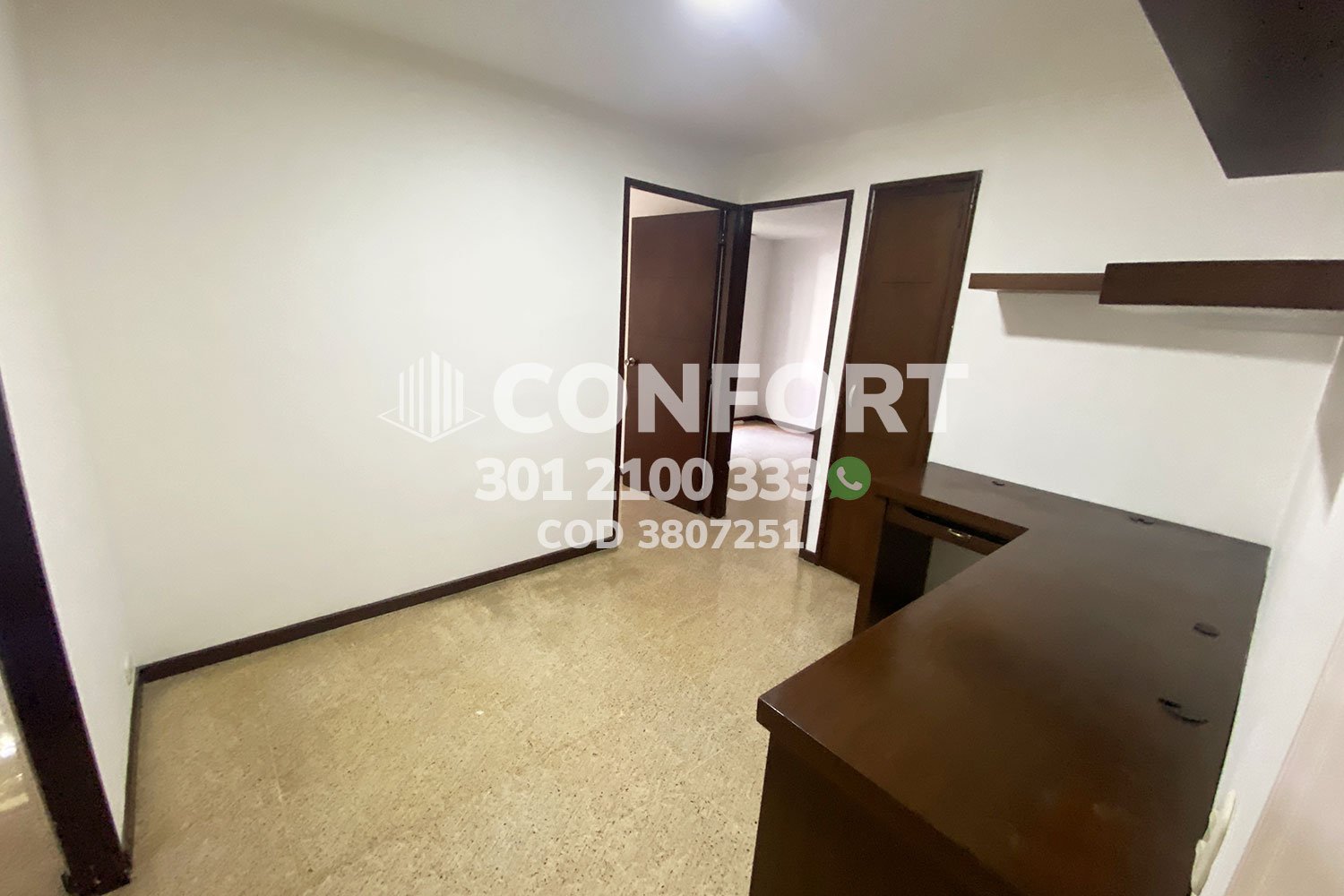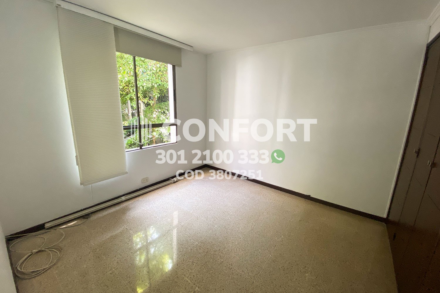 38-07-251 inmobiliaria en Medellín arrienda apartamento ubicado en el sector de Patio Bonito en el Poblado, cuenta con un área de 108mt2 distribuidos en cocina semi integral, sala, comedor, estudio, 3 habitaciones con closet, una de ellas con baño privado, 1 baño social, 1 parqueadero. Ubicado en unidad residencial con seguridad 24/7 sus zonas comunes se distribuyen en piscina, salón social y gimnasio. A su alrededor podemos encontrar el Institución José Félix, Universidad Eafit, avenida el Poblado y avenida las Vegas. CONFORT GESTORES INMOBILIARIOS – Arriendo en Poblado.