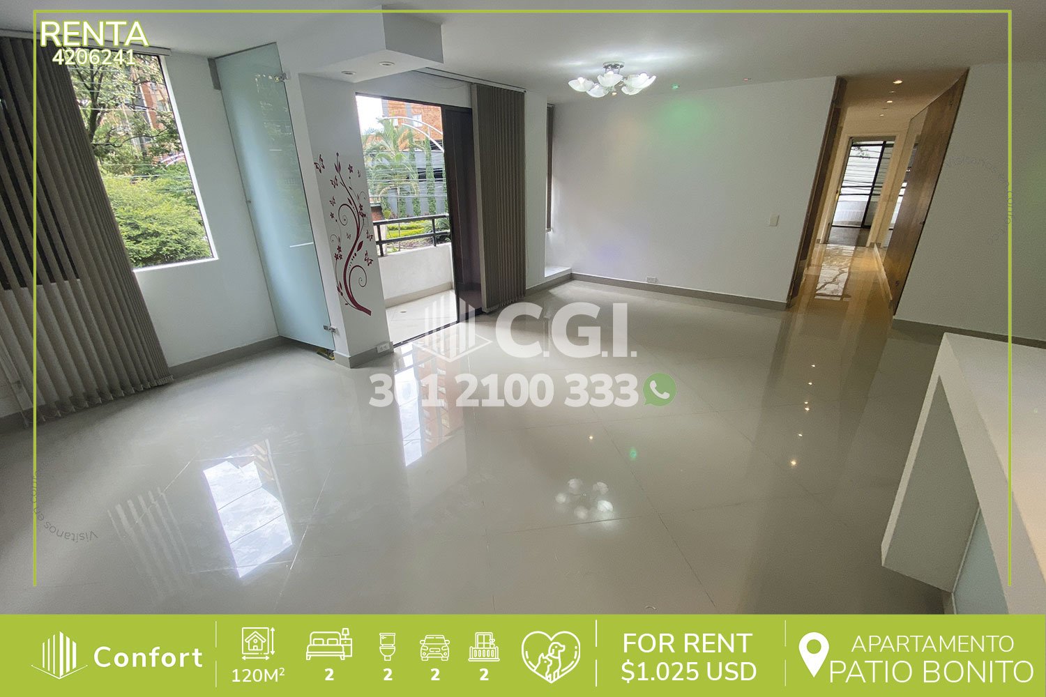 42-06-241 Hermoso y moderno apartamento disponible para la renta ubicado en tranquilo sector de Patio Bonito en El Poblado, cuenta con 120 m² distribuidos en 2 habitaciones, baño privado, baño social, sala de estudio, sala comedor, 2 balcones, cocina integral, zona de ropas y seguridad privada 24/7. A su alrededor podemos encontrar San Fernando Plaza, clínica Las Vegas, rutas de acceso por avenida El Poblado, avenida Las Vegas, avenida regional y gran variedad de trasporte público. CONFORT GESTORES INMOBILIARIOS – Arriendo en El Poblado