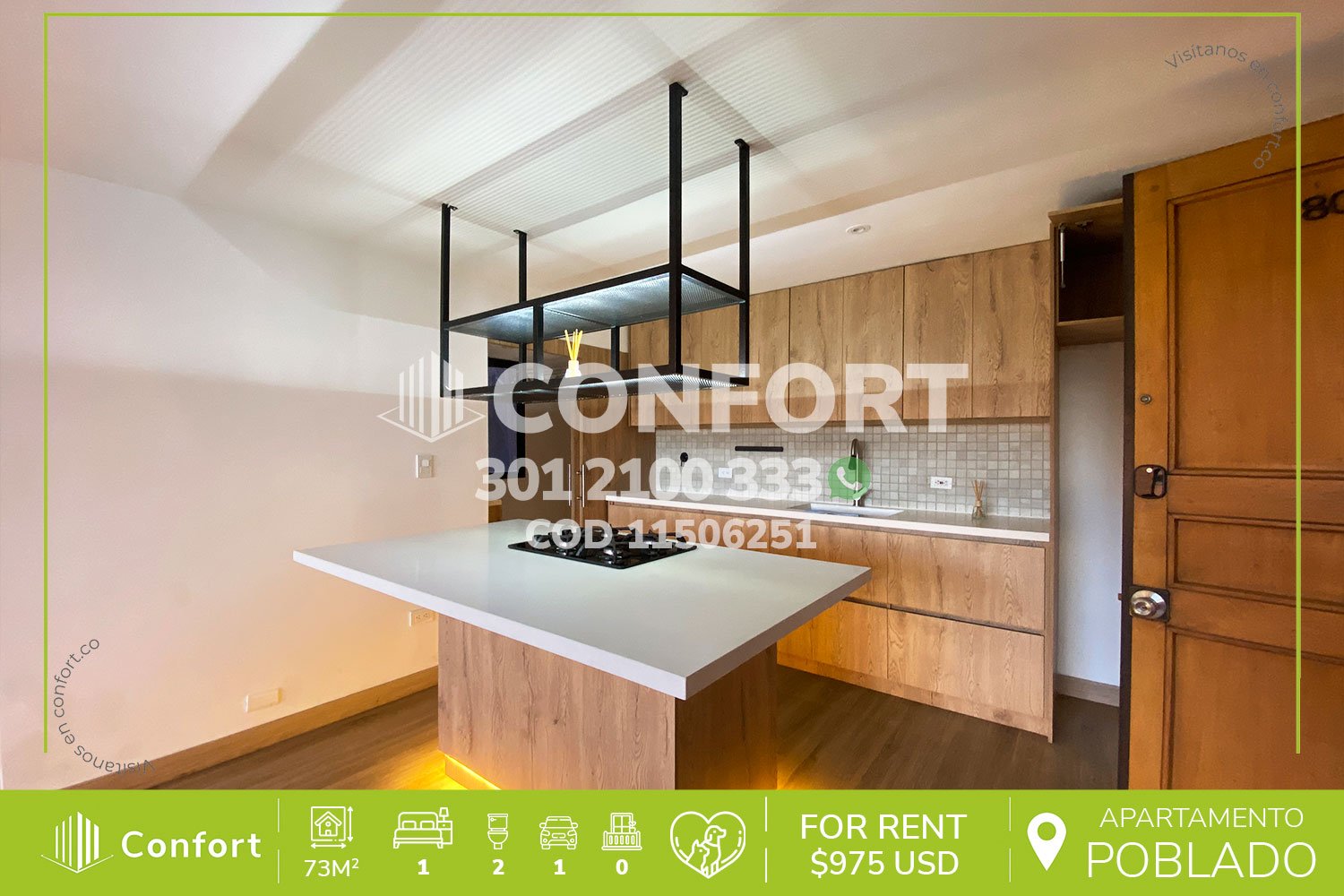 115-06-251 Inmobiliaria en Medellín arrienda apartamento ubicado en el sector de Santa María de Los Ángeles en El Poblado, cuenta con un área de 73mt2 distribuidos en sala comedor, cocina semi integral, zona de lavado, 1 habitación con vestier y baño privado, baño social y parqueadero doble lineal. Ubicado en edificio con seguridad privada 24/7, donde a su alrededor podemos encontrar el Automall Santamaría Las Vegas, clínica Todosalud y el centro comercial Monterrey, con vías de acceso por las avenidas Las Vegas, regional, calle 12a y gran variedad de transporte público. CONFORT GESTORES INMOBILIARIOS – Arriendo en El Poblado