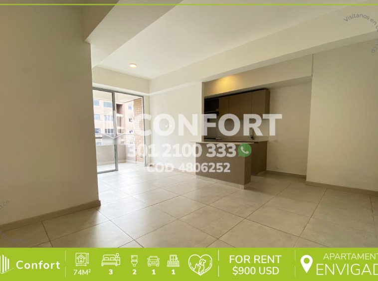 48-06-252 Inmobiliaria en Medellín arrienda apartamento ubicado en el sector de Villagrande en Envigado, cuenta con un área de 74mt2 distribuidos en sala comedor, cocina integral con barra americana, zona de lavado, 3 habitaciones, la principal con vestier y baño privado, baño social balcón con hermosa vista y parqueadero. Ubicado en edificio con seguridad privada 24/7 y zonas comunes como piscina para adultos y niños, zona de juegos, salón social, turco, gimnasio, placa polideportiva, zona BBQ y zonas verdes, a su alrededor podemos encontrar el centro comercial Viva Envigado, Museo Arqueológico de Envigado y Éxito de Envigado, con vías de acceso por las avenidas El Poblado, regional y gran variedad de transporte público. CONFORT GESTORES INMOBILIARIOS – Arriendo en Envigado
