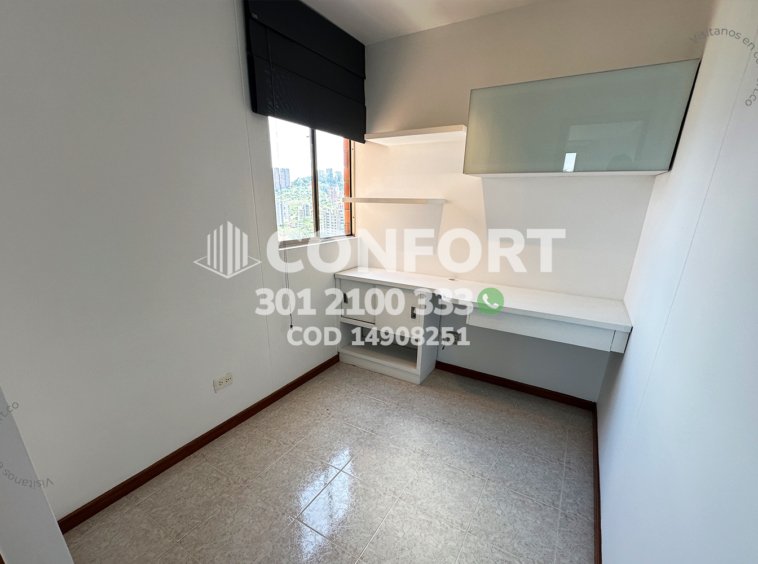 149-08-251 Inmobiliaria en Medellín arrienda apartamento ubicado en el sector de Vizcaya en El Poblado, cuenta con un área de 94mt2 distribuidos en sala comedor, cocina integral con barra americana, zona de ropas, balcón, 3 habitaciones, una de ellas con baño privado y vestier, 2 con clóset, baño social, sala de estudio, parqueadero y cuarto útil. Ubicado en edificio con seguridad privada 24/7 y zonas comunes como piscinas para niños y adultos, salón social, turco y parque infantil, a su alrededor podemos encontrar Carulla, centro comercial Vizcaya y el Mall Piazza Bella, con vías de acceso por la avenida El Poblado, transversal inferior y gran variedad de transporte público. CONFORT GESTORES INMOBILIARIOS – Arriendo en El Poblado