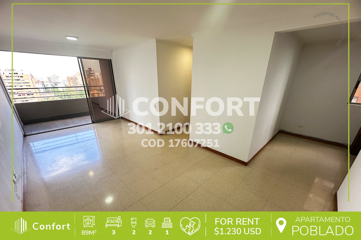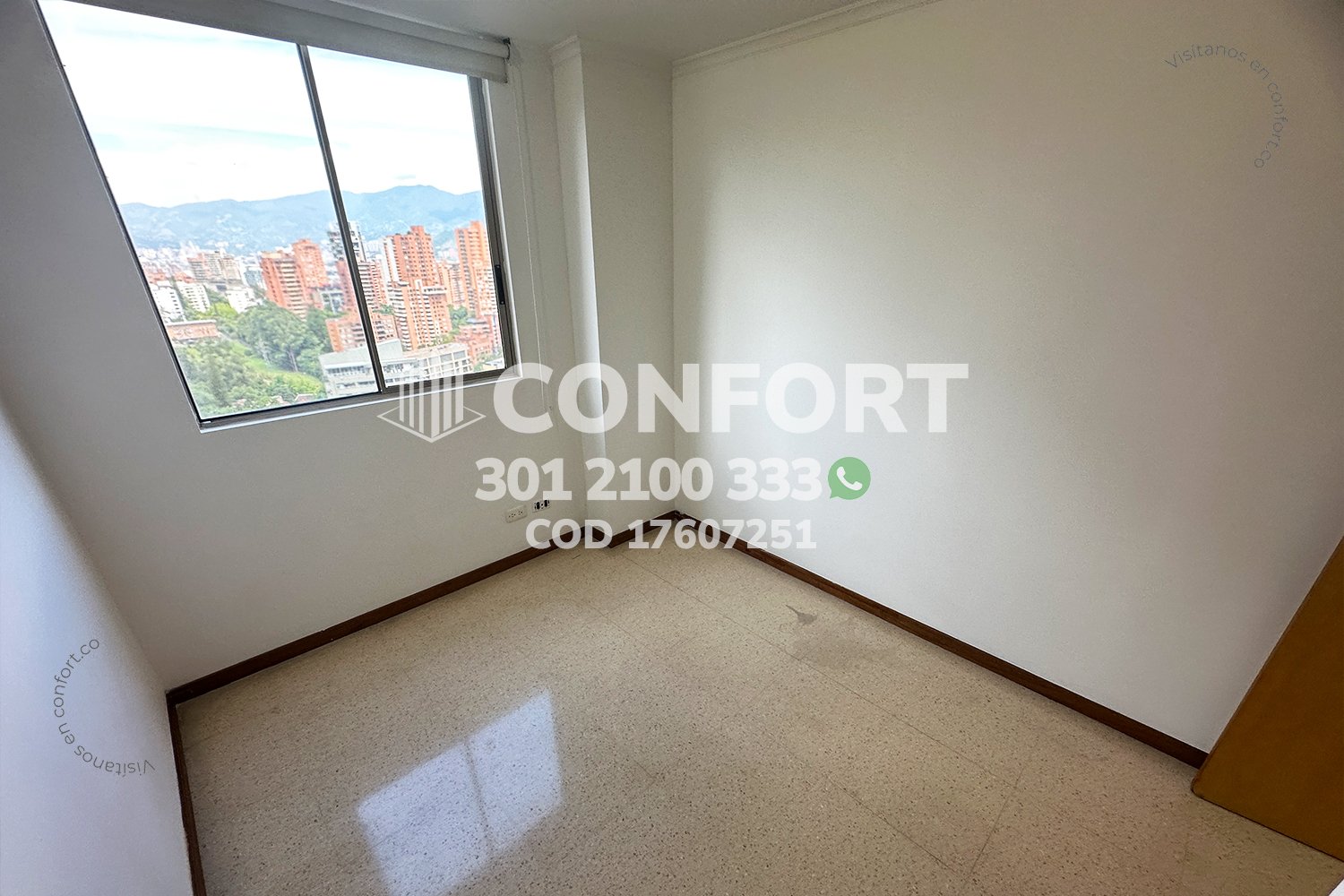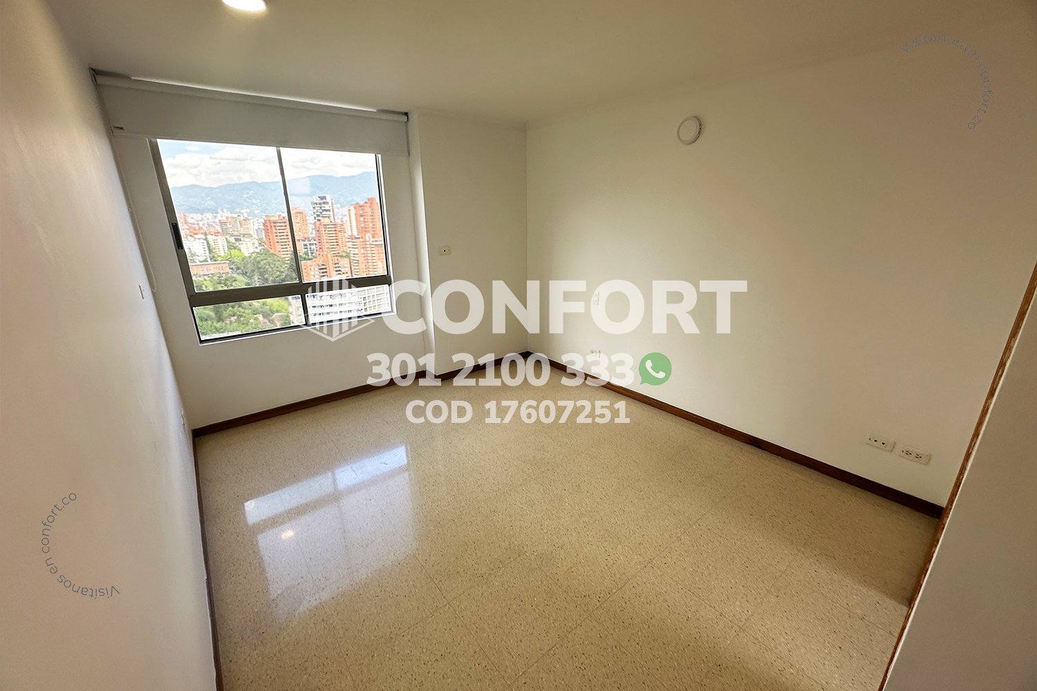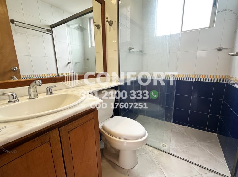 176-07-251 Inmobiliaria en Medellín arrienda apartamento ubicado en el sector de Vizcaya en El Poblado, cuenta con un área de 89mt2 distribuidos en sala comedor, cocina integral con barra americana, zona de ropas, balcón, 3 habitaciones, una de ellas con baño privado y vestier, 2 con clóset, baño social, biblioteca, sala de estudio con posibilidad de una cuarta habitación, 2 parqueaderos y cuarto útil. Ubicado en edificio con seguridad privada 24/7 y zonas comunes como piscinas para niños y adultos, salón social, turco y parque infantil, a su alrededor podemos encontrar Carulla, centro comercial Vizcaya y el Mall Piazza Bella, con vías de acceso por la avenida El Poblado, transversal inferior y gran variedad de transporte público. CONFORT GESTORES INMOBILIARIOS – Arriendo en El Poblado