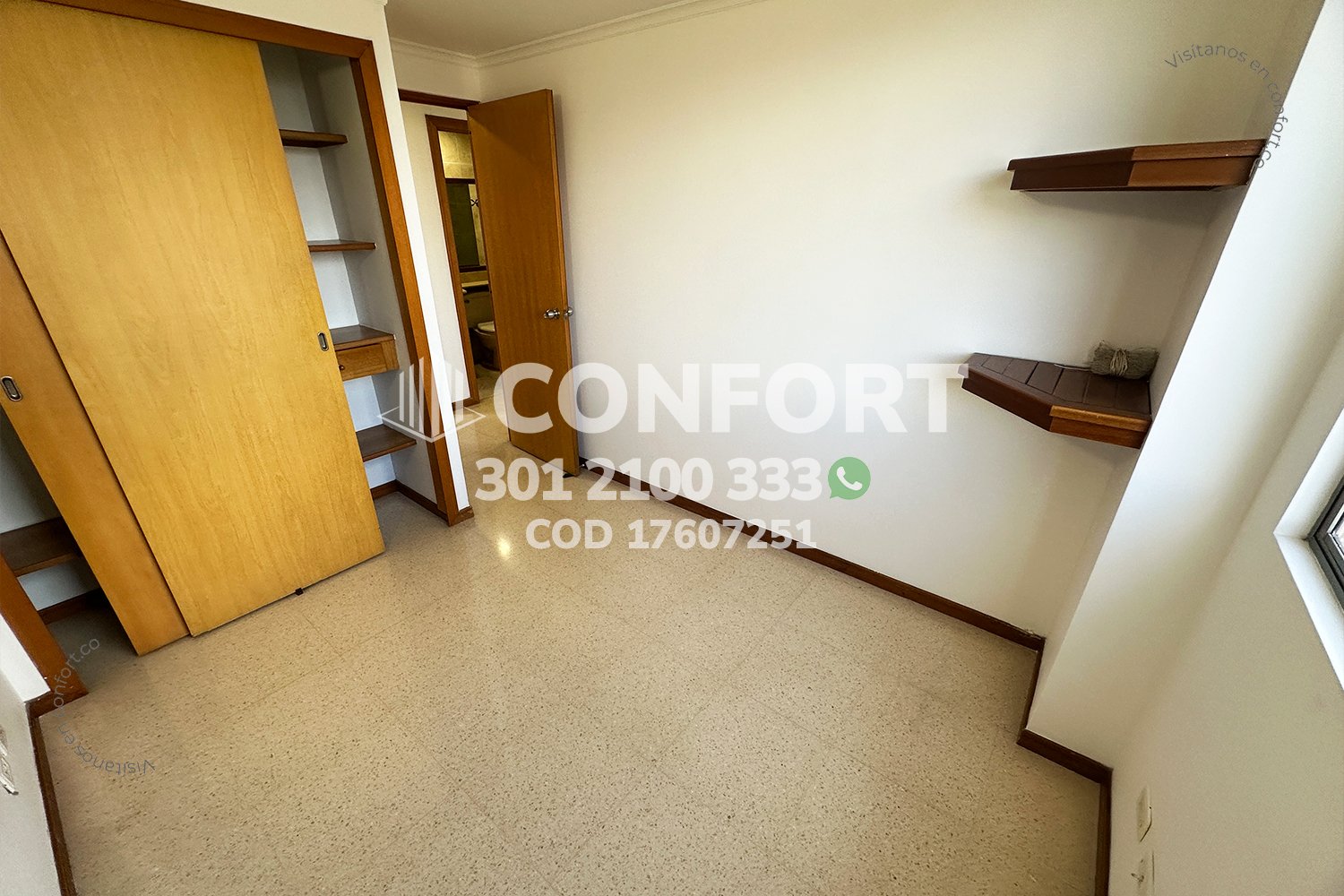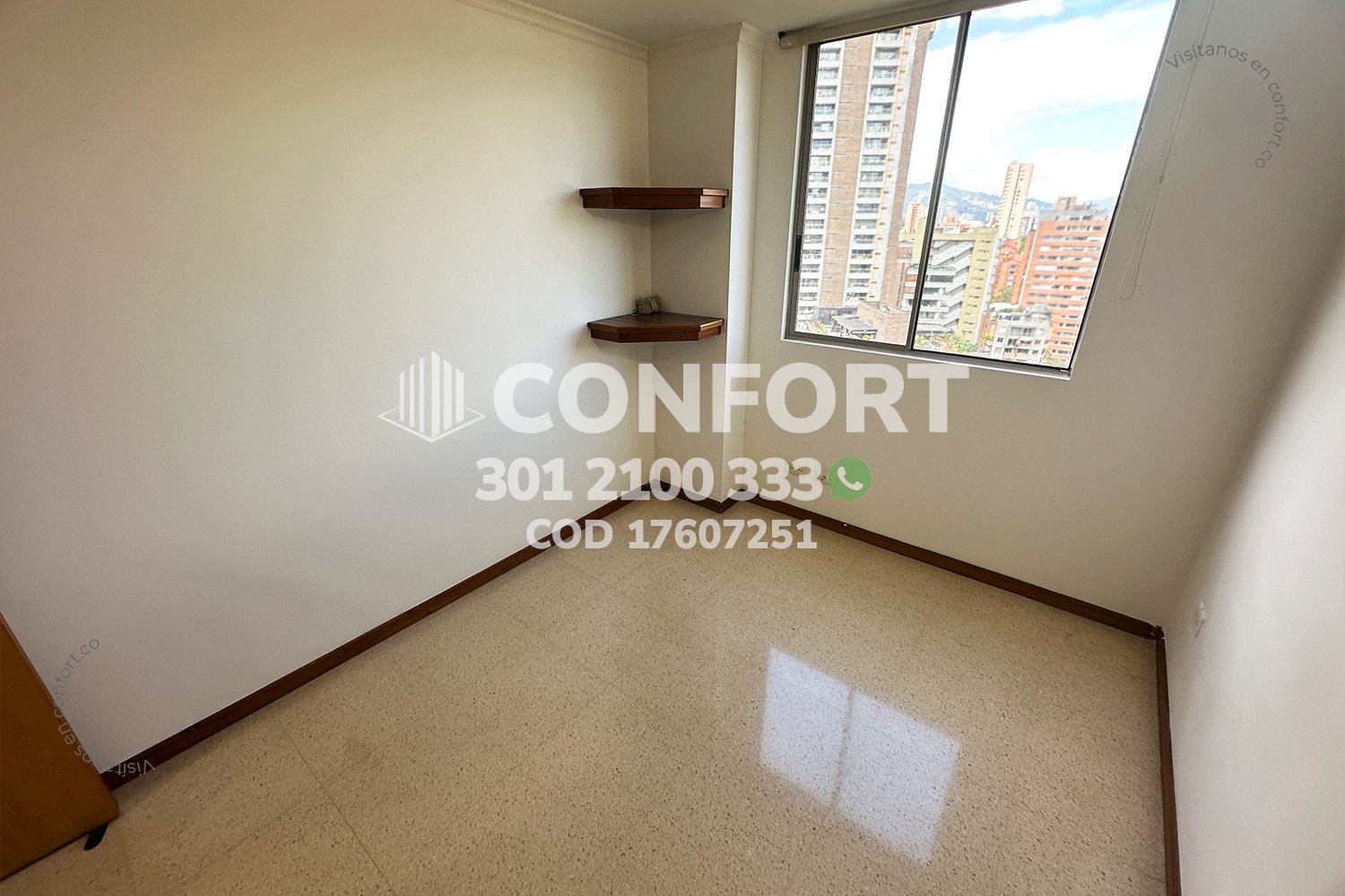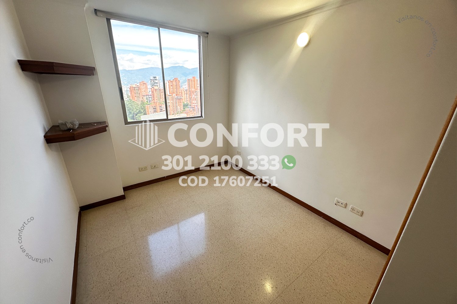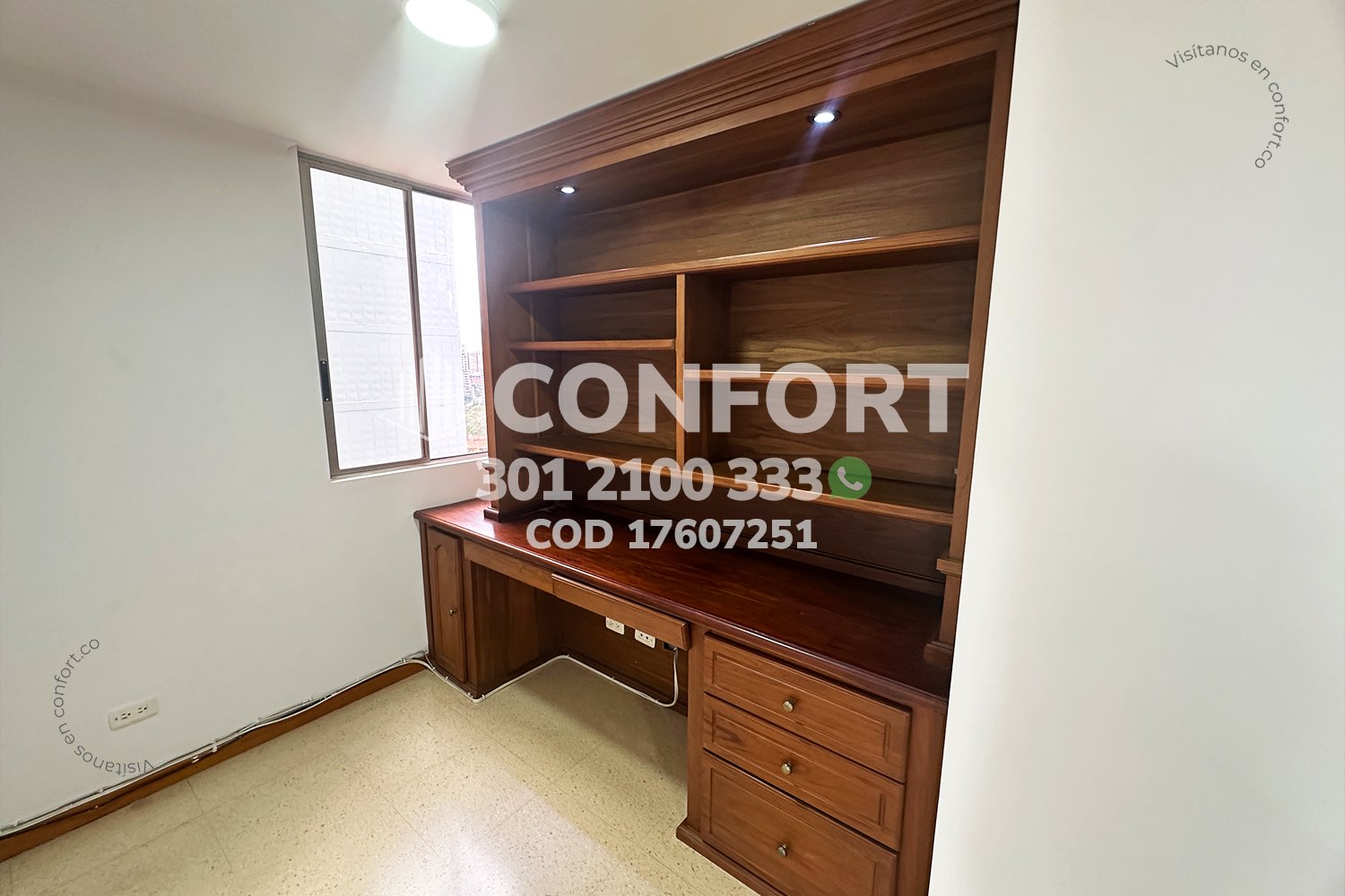 176-07-251 Inmobiliaria en Medellín arrienda apartamento ubicado en el sector de Vizcaya en El Poblado, cuenta con un área de 89mt2 distribuidos en sala comedor, cocina integral con barra americana, zona de ropas, balcón, 3 habitaciones, una de ellas con baño privado y vestier, 2 con clóset, baño social, biblioteca, sala de estudio con posibilidad de una cuarta habitación, 2 parqueaderos y cuarto útil. Ubicado en edificio con seguridad privada 24/7 y zonas comunes como piscinas para niños y adultos, salón social, turco y parque infantil, a su alrededor podemos encontrar Carulla, centro comercial Vizcaya y el Mall Piazza Bella, con vías de acceso por la avenida El Poblado, transversal inferior y gran variedad de transporte público. CONFORT GESTORES INMOBILIARIOS – Arriendo en El Poblado