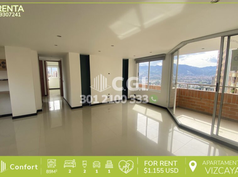 93-07-241 Inmobiliaria en Medellín arrienda excelente apartamento en el Poblado, barrio Vizcaya, cuenta con 89mts2 distribuidos en sala comedor, balcón, cocina integral, zona de ropa, baño social, habitación auxiliar con clóset, habitación principal con vestier y baño privado, parqueadero y cuarto útil. Ubicado en unidad con seguridad privada 24/7 y zonas comunes como salón social, zona pet, parque infantil y turco, donde a sus alrededores podemos encontrar Provenza, mall Piazza Bella, Iglesia Ministerial, colegio Marymount y rutas de acceso como la transversal inferior, la transversal 7A, junto con gran variedad de rutas de transporte público. CONFORT GESTORES INMOBILIARIOS – Arriendo en El Poblado