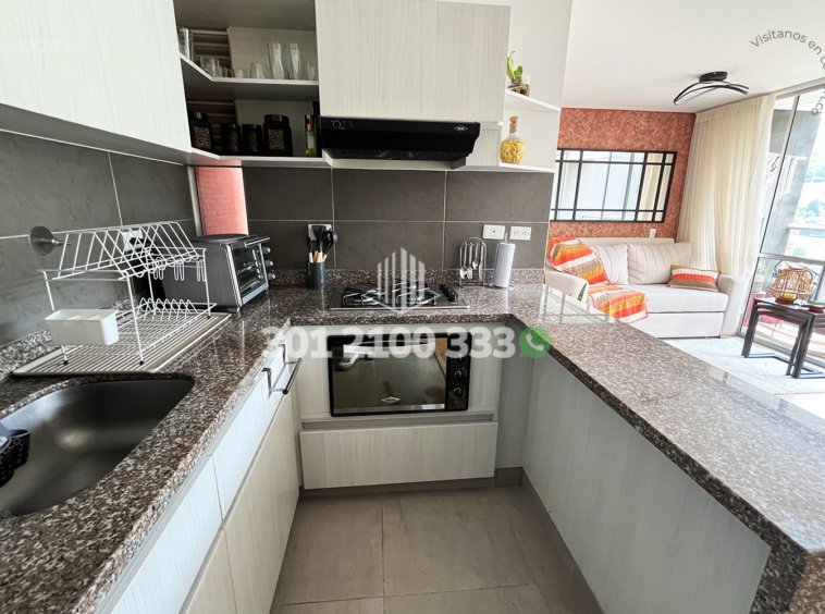 04-03-264A Inmobiliaria en Medellín arrienda apartamento amoblado ubicado en el sector de Cañaveralejo en Sabaneta, cuenta con un área de 78mt2 distribuidos en sala comedor, cocina integral con barra americana, zona de ropas, balcón, 3 habitaciones con clóset, una de ellas con vestier y baño privado, baño social, parqueadero y cuarto útil. Ubicado en unidad con seguridad privada 24/7 y zonas comunes como piscina, turco, sauna, zona pet, gimnasio, salón social, cancha de fútbo, salón de juegos y zonas verdes, a su alrededor podemos encontrar el mall Zona Dos Sur, centro comercial Aves María y Farmatodo, con vías de acceso por las avenidas Las Vegas, Regional y gran variedad de rutas de transporte público. CONFORT GESTORES INMOBILIARIOS – Arriendo en Sabaneta