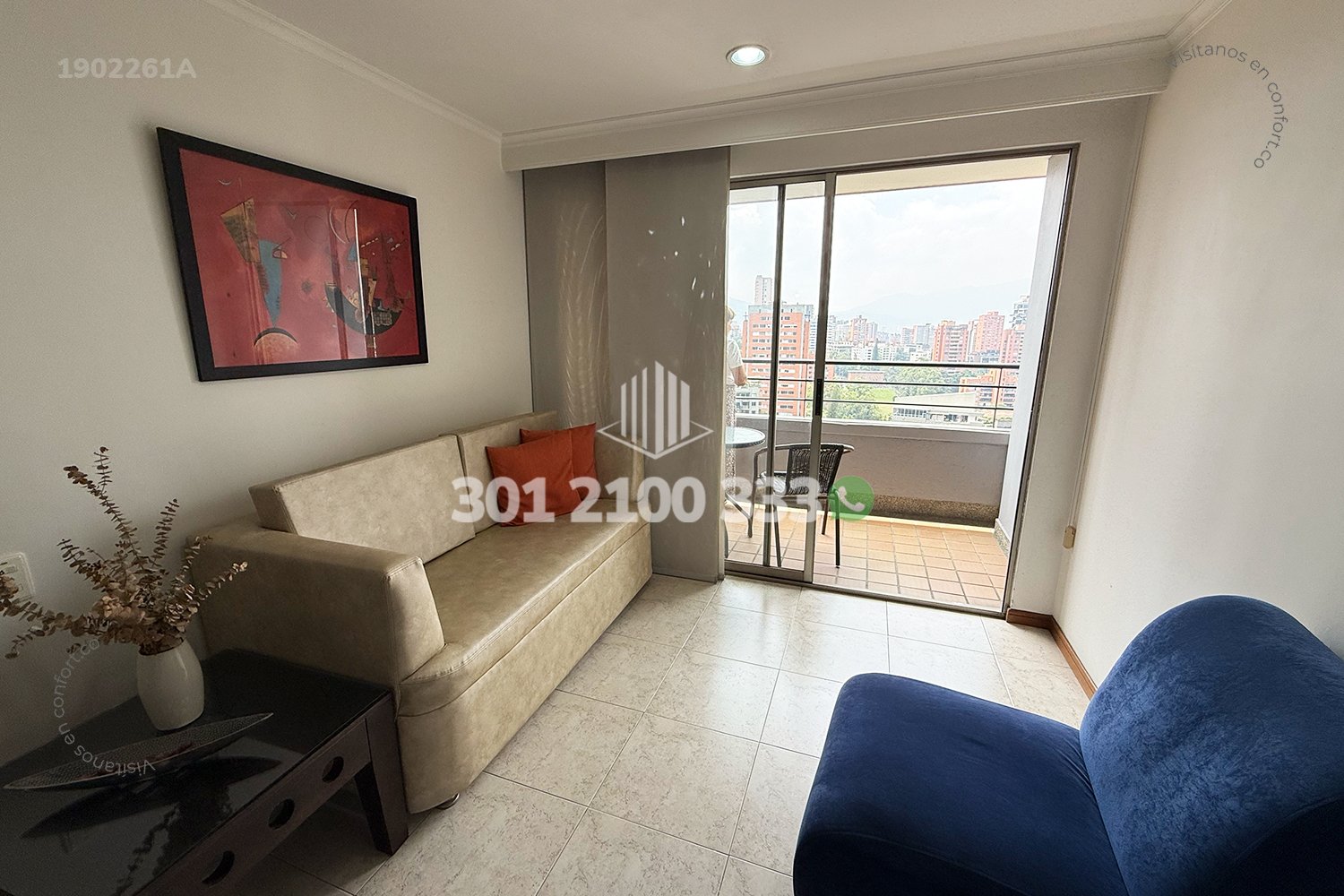19-02-261A Inmobiliaria en Medellín arrienda apartamento amoblado ubicado en el sector de la Florida en el Poblado. Cuenta con un área de 100mt2 distribuidos en sala comedor, zona ropas, habitación servicio con baño, cocina integral, balcón, baño social, 3 habitaciones, la principal de ellas con baño privado, zona estudio y parqueadero porivado. Ubicadi en unidad residencial con seguridad 24/7 y zonas comunes como salon social, zona infantil, piscina para adultos, a sus alrededores encontramos centro comercial Santa Fe, Provenza, con vías de acceso por Transversla Inferior y Transversal Intermedia, con variedad de rutas de transporte público. CONFORT GESTORES INMOBILIARIOS – Arriendo en el Poblado