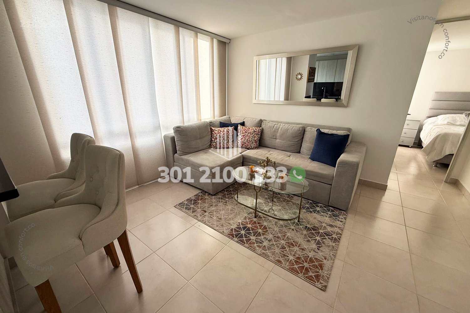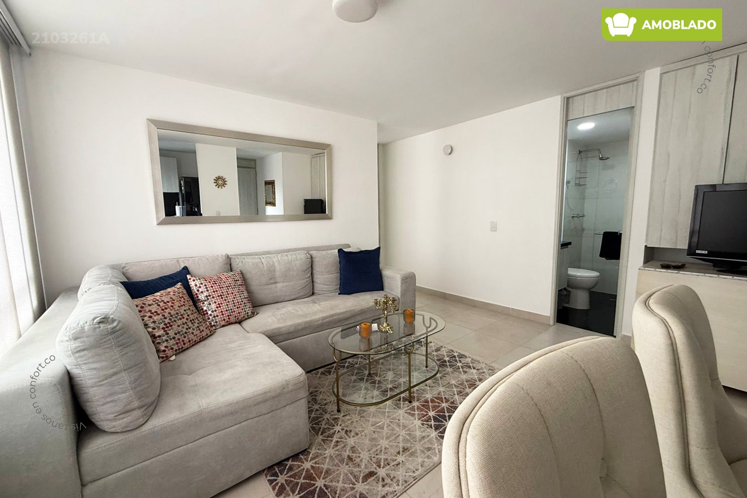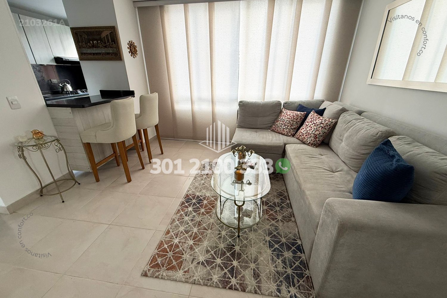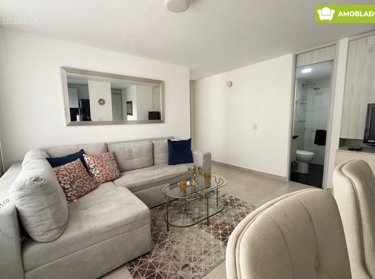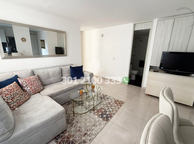 21-03-261A Inmobiliaria en Medellín arrienda apartamento amoblado ubicado en el sector de Villa Carlota en El Poblado, cuenta con un área de 55mt2 distribuidos en sala comedor, cocina integral con barra americana, zona de ropas, 2 habitaciones, la principal con baño privado y vestier, baño social y parqueadero. Ubicado en unidad con seguridad privada 24/7 y zonas comunes como piscina para niños y adultos, salón social, parque infantil y zonas verdes, a su alrededor podemos encontrar el centro comercial Premium Plaza, parque de El Poblado y el Museo de Arte Moderno, con vías de acceso por las avenidas El Poblado, Las Vegas y gran variedad de rutas de transporte público. CONFORT BROKER – Arriendo en El Poblado