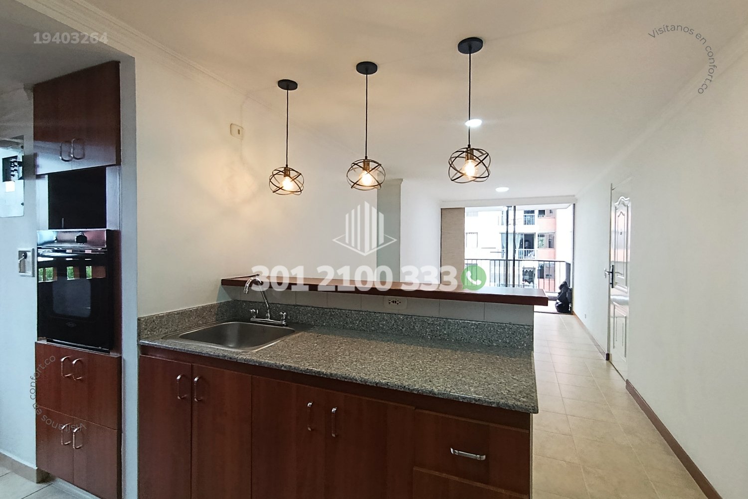 194-03-264 Inmobiliaria en Medellín vende apartamento ubicado en el sector de Calle Larga en Sabaneta, cuenta con un área de 87mt2 distribuidos en sala comedor, cocina semi integral, zona de ropas, habitación de servicio con baño privado, 3 habitaciones con clóset, una de ellas con baño privado, baño social y parqueadero. Ubicado en unidad con seguridad privada 24/7 y zonas comunes como piscina para niños y adultos, salón social, parque infantil y zonas verdes, a su alrededor podemos el hospital Venancio Díaz y la estación del metro La estrella, con vías de acceso por las avenidas Las Vegas, Regional y gran variedad de rutas de transporte público. CONFORT BROKER – Venta en Sabaneta