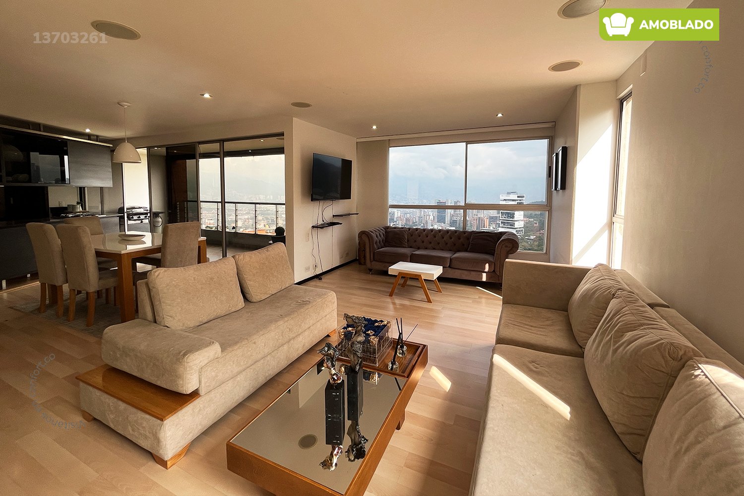 137-03-261 Inmobiliaria en Medellín arrienda apartamento amoblado ubicado en el sector de El Tesoro en El Poblado, cuenta con una área de 168mt2 distribuidos en sala comedor, cocina integral, balcón social, zona de ropas, zona de estudio, biblioteca, 2 habitaciones con vestier y baño privado, una de ellas cuenta con bañera y balcón privado, baño social, habitación de servicio con baño privado, cava de vinos, 2 parqueaderos paralelos y cuarto útil. Ubicado en unidad con seguridad privada 24/7 y zonas comunes como piscina, turco, gimnasio, juegos infantiles y zonas verdes, a su alrededor podemos encontrar el centro comercial El Tesoro, Ámsterdam Plaza y Provenza, con vías de acceso por la transversal superior, calle 10 y amplia variedad de rutas de transporte público. CONFORT GESTORES INMOBILIARIOS – Arriendo en El Poblado