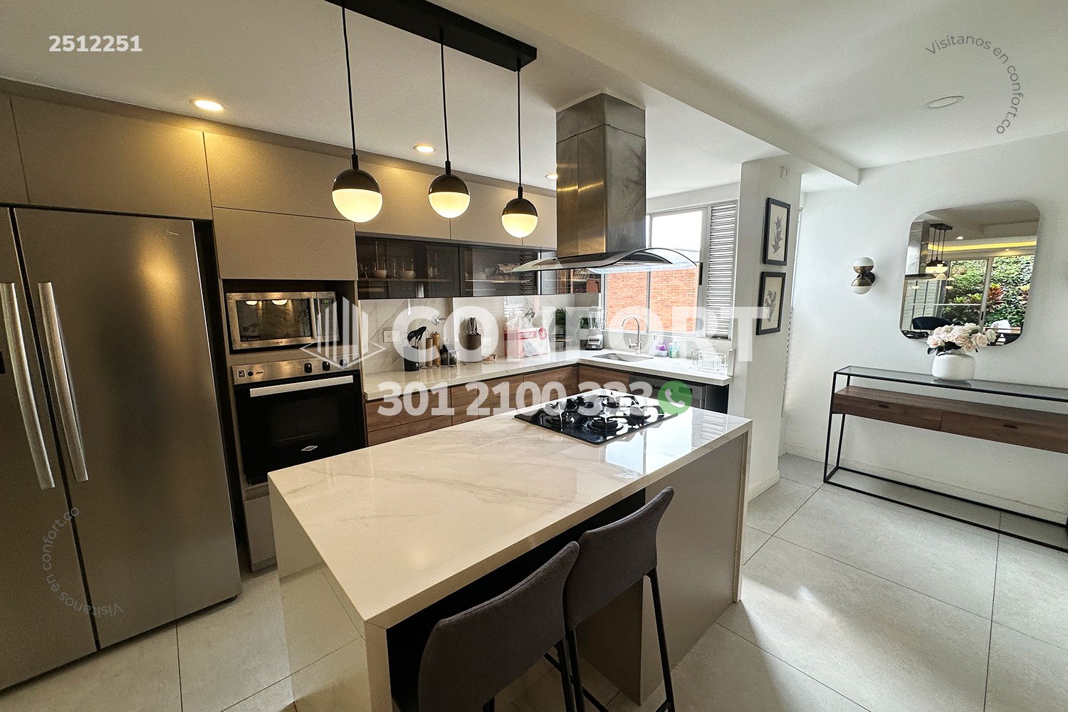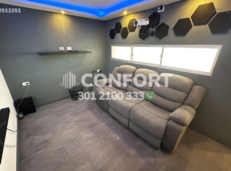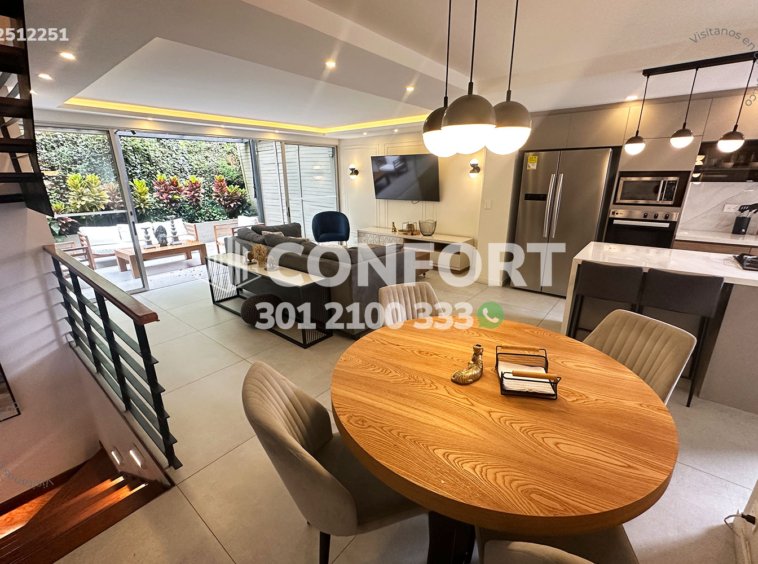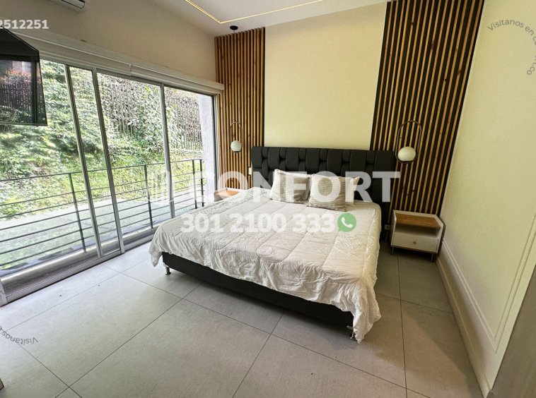 25-12-251 Inmobiliaria en Medellín arrienda casa amoblada ubicada en el sector de Altos del Poblado. Cuenta con un área de 160mt2 distribuidos en sala, comedor, cocina integral con barra americana, zona de ropas , terraza con zona bbq , 3 habitaciones, la principal de ellas con baño privado, 3 baños sociales, sala de cine, 2 parqueaderos cubiertos y cuarto útil. . Ubicada en unidad con seguridad privada 24/7 y zonas comunes como piscinas para niños y adultos, salón social y parque infantil, a su alrededor podemos encontrar el túnel de Oriente, parroquia Marianito y Supermercado Oxxo, con vías de acceso por la avenida Las Palmas, transversal superior y gran variedad de transporte público. CONFORT GESTORES INMOBILIARIOS – Arriendo en El Poblado