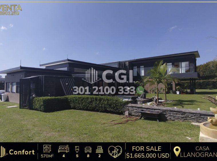 89-01-258 Casa campestre disponible para la venta, ubicada en el exclusivo sector de Llano Grande en en Rionegro. Cuenta con un área de 2370mt2, de los cuales encontramos 570mt2 construidos, distribuidos en sala comedor amplia, cocina integral tipo isla abierta, zona de ropas amplia, habitación de servicio con baño privado, baño social, 4 habitaciones, 2 de ellas con balcón y cada una con vestier y baño privado, oficina privada, sala de cine, terraza amplia con zona bbq, licorera, turco, jacuzzi y gimnasio, además de zonas verdes, zona de fogata, zona de meditación, ubicada en parcelación con seguridad 24/7, cerca al club campestre Llano Grande y con vías de acceso por Medellín – Llano Grande, La Ceja – Cabeceras, y diferentes rutas de transporte público. CONFORT GESTORES INMOBILIARIOS – Arriendo en Llano Grande