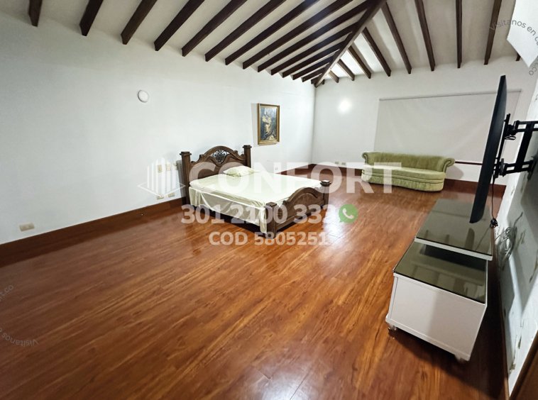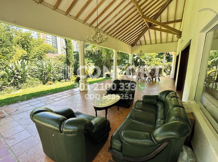58-05-251 Inmobiliaria en Medellín arrienda casa campestre ubicada en el sector de Los Balsos en El Poblado, cuenta con un lote de 2200mt2 con 800mt2 construidos y distribuidos en sala de muy buen espacio, comedor, cocina integral, zona de ropas, terraza grande con jardín, 7 habitaciones cada una con baño privado y vestier, una de ellas cuenta con jacuzzi, baño social, sala de star, habitación de servicio con su respectivo baño privado, 4 parqueaderos cubiertos, 5 parqueaderos descubiertos y cuarto útil. Además, cuenta con sistema de vigilancia y cámaras dentro de la propiedad para mayor seguridad, a su alrededor podemos encontrar el restaurante Marmoleo, Complex Los Balsos y el colegio Manzanares, con vías de acceso por la transversal superior, avenida El Poblado, Loma Los Balsos y gran variedad de rutas de transporte público. CONFORT GESTORES INMOBILIARIOS – Arriendo en El Poblado