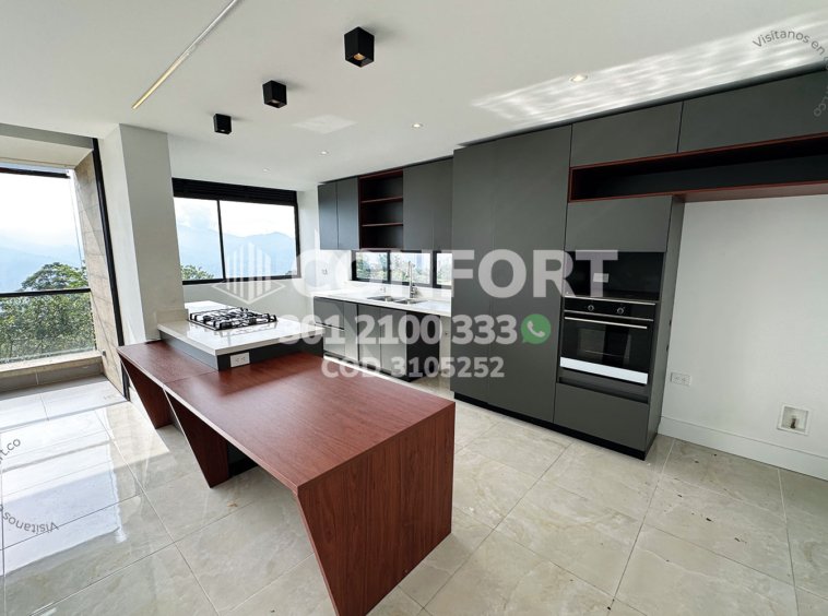 31-05-252 Inmobiliaria en Medellín arrienda casa ubicada en el sector de El Chocho en Envigado, cuenta con un área de 200mt2 distribuidos en sala comedor de muy buen espacio, cocina semi integral con barra americana, zona de ropas, 2 balcones con vista panorámica, 3 habitaciones cada una con baño privado y vestier, sala de star, baño social, 2 parqueaderos y cuarto útil. Ubicada en unidad cerrada con seguridad privada 24/7, donde a su alrededor podemos encontrar el Mall Terracina, colegio Montessori y tiendas D1, con vías de acceso por la transversal intermedia, avenida El Poblado y gran variedad de rutas de transporte público. CONFORT GESTORES INMOBILIARIOS – Arriendo en Envigado