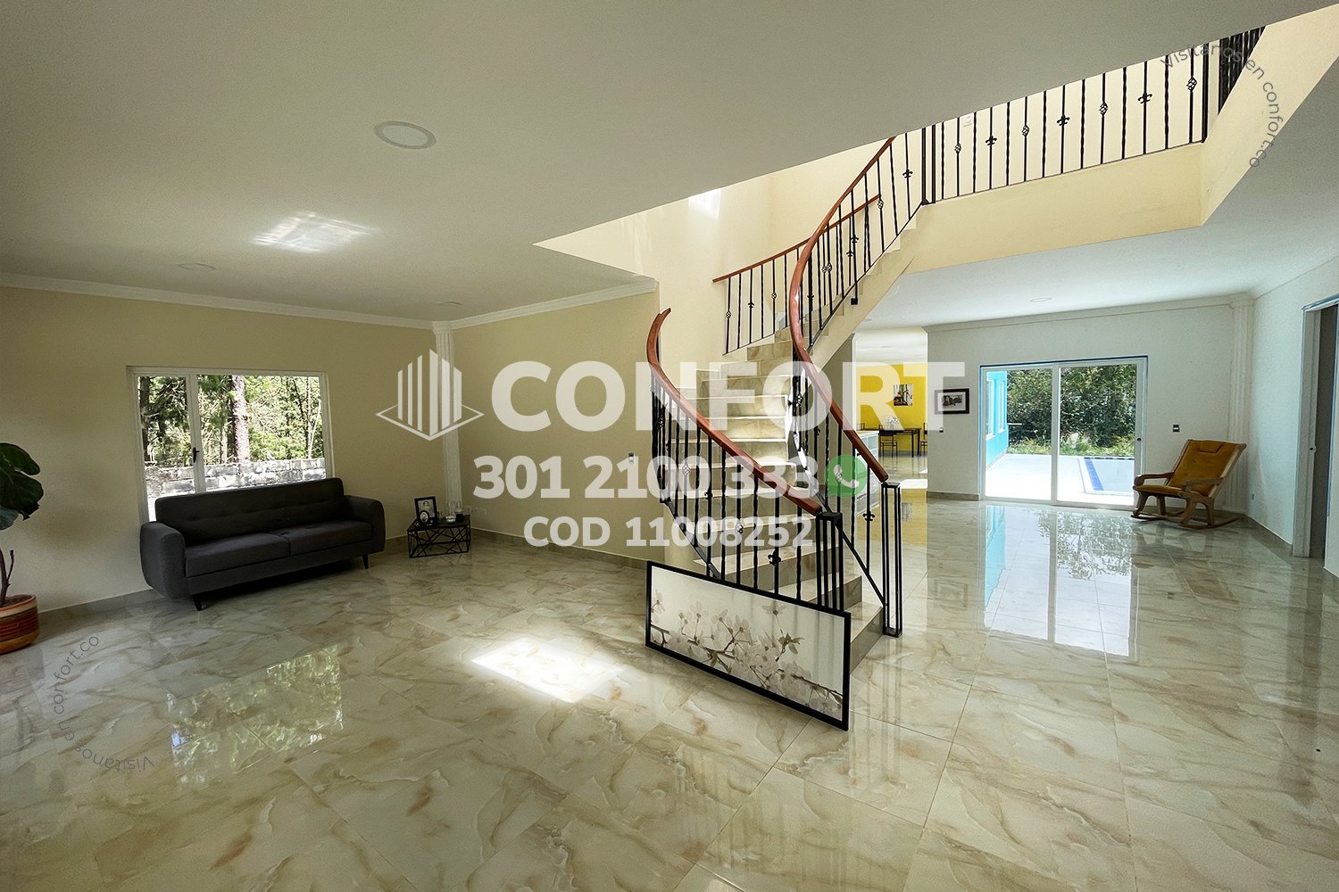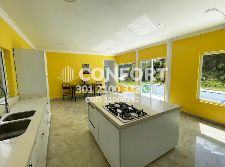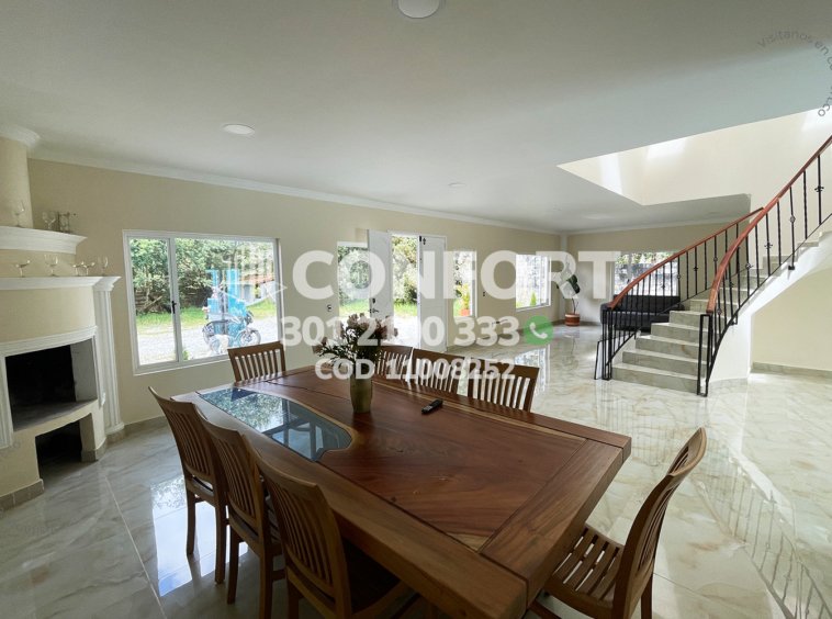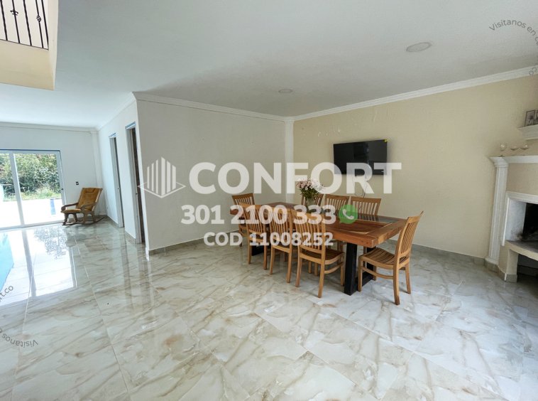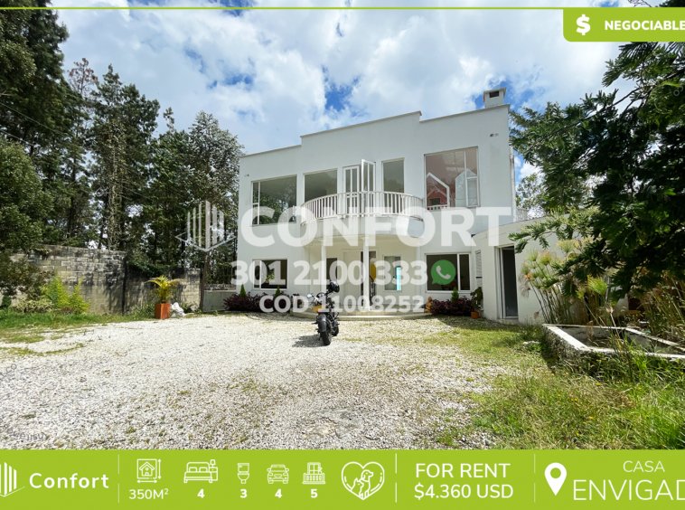 110-08-252 Inmobiliaria en Medellín arrienda casa ubicada en el sector del Escobero en Envigado, cuenta con un área de 1800mt2 de lote con 350mt2 construidos y distribuidos en 2 plantas con sala comedor con chimenea, zona de lavado, cocinasemi integral en isla con lavavajillas y acabados modernos, 4 habitaciones con balcón, 2 de ellas con baño privado, baño social, habitación de servicio con baño, biblioteca, gimnasio, piscina, amplia terraza con zona BBQ, parqueadero para 4 vehículos, cuarto útil y amplias zonas verdes. Ubicada en parcelación con seguridad 24/7 y con zonas comunes como jacuzzi, sauna, turco, salón social, gimnasio, parque infantil, canchas de squash y de fútbol, a su alrededor podemos encontrar el colegio San José de Las Vegas, Vermont School y Éxito Express, con vías de acceso por Las Palmas, Loma del Escobero. CONFORT GESTORES INMOBILIARIOS – Arriendo en Envigado