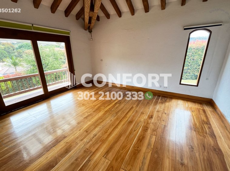 35-01-262 Inmobiliaria en Medellín arrienda casa ubicada en el sector del Escobero en Envigado. Cuenta con un área de 330mt2 distribuidos en sala, comedor, cocina integral, sala de estudio, zona de ropas, 4 habitaciones, 3 de ellas con baño privado y vestier, habitación de servicio con baño, terraza, mezzanine, sala de estar, chimenea, balcón, jardín, zona verde, chimenea, 4 parqueaderos abiertos. Ubicada en parcelación con seguridad privada 24/7, donde a su alrededor podemos encontrar Carulla, Mall Indiana y el colegio San José de Las Vegas, con vías de acceso por la avenida Las Palmas, Loma del Escobero y gran variedad de rutas de transporte público. CONFORT GESTORES INMOBILIARIOS – Arriendo en Envigado