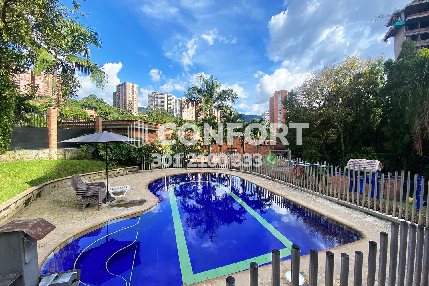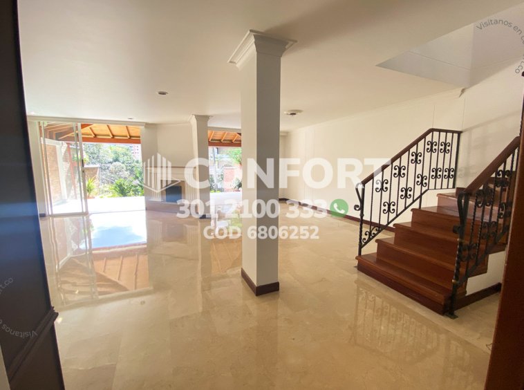 68-06-252 Inmobiliaria en Medellín arrienda casa ubicada en el sector de El Escobero en Envigado, cuenta con un área de 187mts distribuidos en sala comedor con chimenea, cocina integral, zona de lavado, 3 habitaciones, 2 de ellas con baño privado, 2 baños sociales, habitación de servicio con baño privado, zona de estudio con biblioteca, terraza con acceso a amplia zona verde, garaje para 2 vehículos y cuarto útil. Ubicada en unidad con seguridad privada 24/7 y zonas comunes tales como piscina para adultos, juegos infantiles, salón social, gimnasio, cancha de fútbol y zonas verdes, a su alrededor podemos encontrar el centro comercial City Plaza, colegio Cumbres, vías de acceso por la avenida El Poblado, transversal Intermedia y gran variedad de transporte público. CONFORT GESTORES INMOBILIARIOS – Arriendo en Envigado