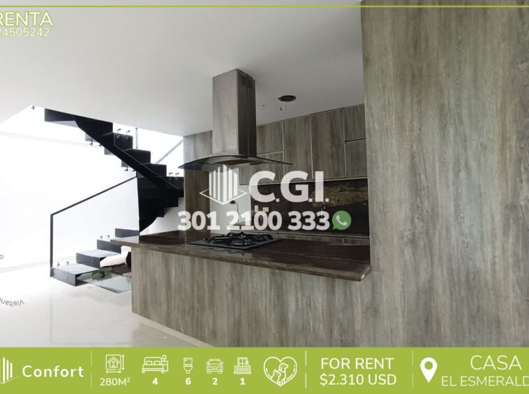 245-05-242 Hermosa y moderna casa disponible para la renta ubicada en tranquilo sector de Envigado, cuenta con un área aproximada de 280mt2 distribuidos en sala comedor, cocina integral moderna con barra americana, zona de lavado, habitación de servicio con baño privado, 3 habitaciones auxiliares de excelente tamaño cada una con su respectivo closet y baño privado, la habitación principal cuenta con vestier y su respectivo baño, adicional cuenta con 2 baños sociales, amplio balcón, amplia sala de estar en su último nivel integrada con la zona verde privada. Incluye 2 parqueaderos y cuarto útil. Ubicado en urbanización con seguridad privada 24/7, donde a su alrededor podemos encontrar el Súper Bowling, Mall Terracina y Smartfit, con vías de acceso por Avenida El Poblado y Transversal intermedia, gran variedad de transporte público. CONFORT GESTORES INMOBILIARIOS – Arriendo en Envigado