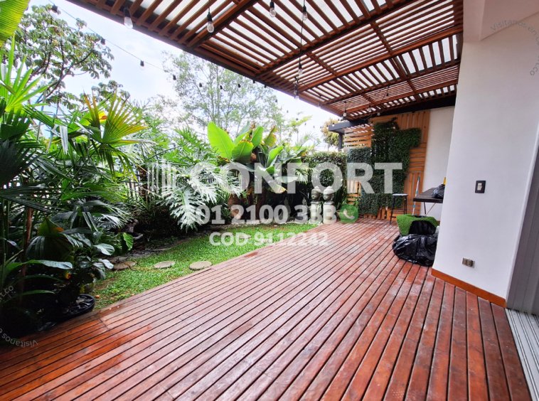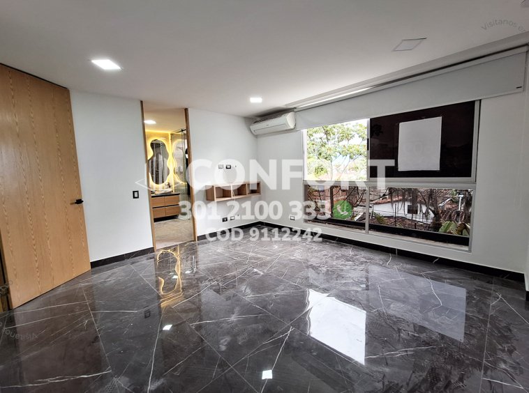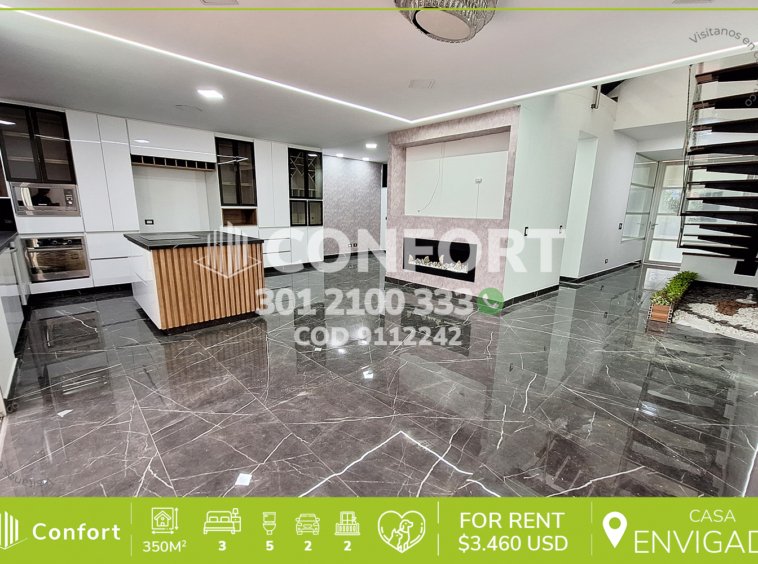 91-12-242 Inmobiliaria en Medellín arrienda casa ubicada en excelente sector de El Esmeraldal en Envigado, cuenta con un área de 350mt2 distribuidos en sala comedor espaciosa, moderna cocina integral con torre de hornos, zona de ropas independiente, 3 habitaciones de excelente tamaño cada una con su respectivo baño, área de estudio o sala de estar, en el primer piso terraza con pérgola integrada con jardín privado, 2 baños sociales y en el último piso encontramos área social con jacuzzi, turco y solárium, además, incluye 2 parqueaderos. Ubicada en urbanización con seguridad 24/7, donde a su alrededor podemos encontrar El Súper Bowling y el colegio Montessori, con vías de acceso por la transversal intermedia y gran variedad de rutas de transporte público. CONFORT GESTORES INMOBILIARIOS – Arriendo en Envigado