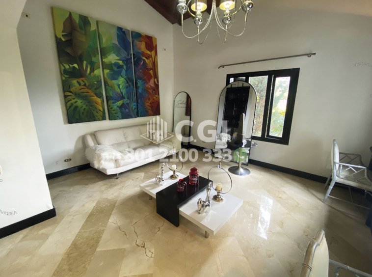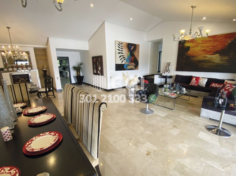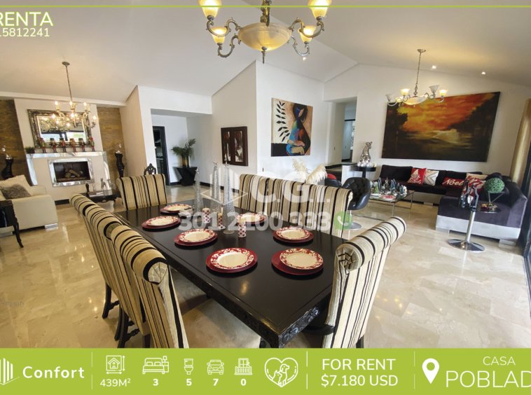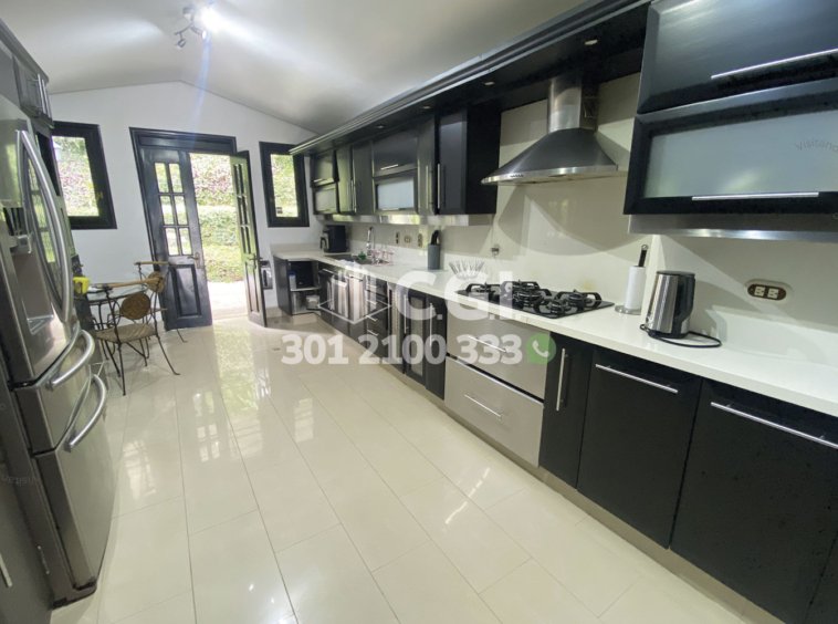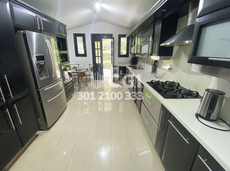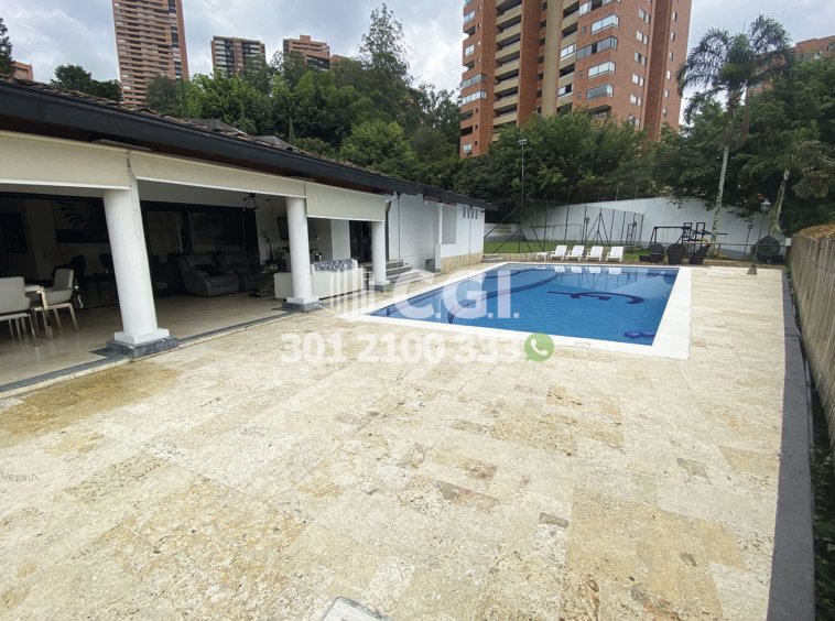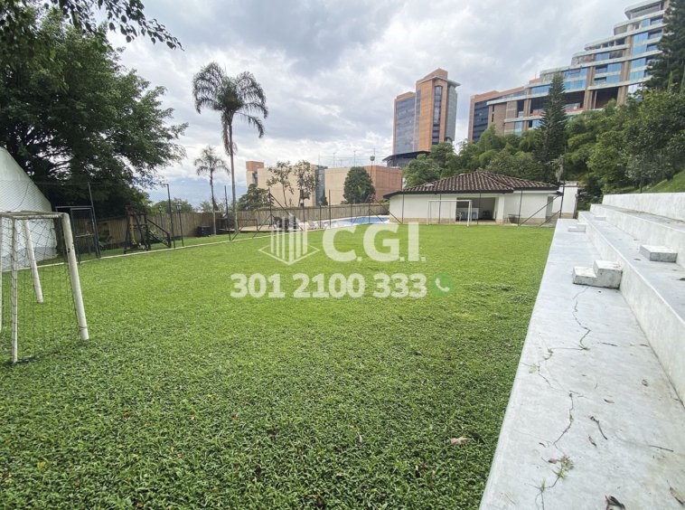 158-12-241 Inmobiliaria en Medellín arrienda casa ubicada en el sector de El Tesoro en El Poblado, cuenta con un área total de 2116mt2 y 439 mts2 construidos y distribuidos en 2 salas de buen tamaño, una de ellas con chimenea, terraza, comedor, cocina integral, zona de ropas, 3 habitaciones con baño privado y vestier, sala de estudio, 2 baños sociales, habitación de servicio con su respectivo baño privado, piscina privada, cancha de fútbol, parque infantil y zonas verdes. Ubicado en exclusiva unidad cerrada con seguridad privada 24/7, donde a su alrededor podemos encontrar el centro comercial El Tesoro, clínica El Rosario y UVA El Tesoro, con rutas de acceso por la avenida El Poblado, transversal superior y gran variedad de transporte público. CONFORT GESTORES INMOBILIARIOS – Arriendo en El Poblado