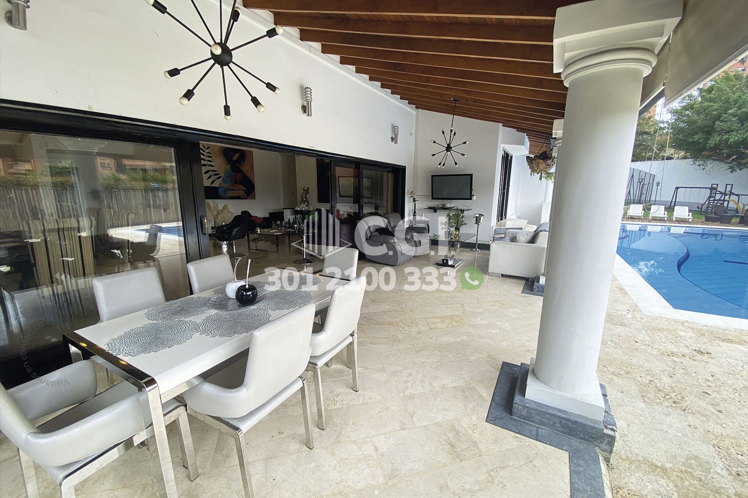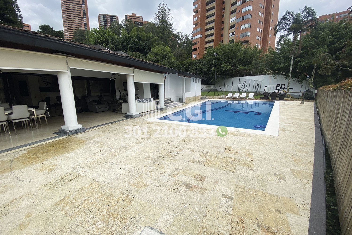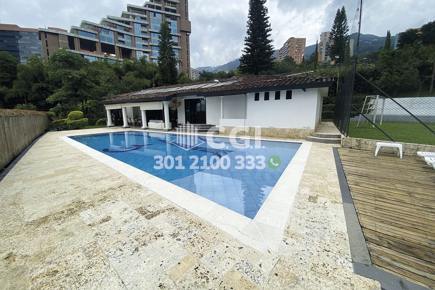 158-12-241 Inmobiliaria en Medellín arrienda casa ubicada en el sector de El Tesoro en El Poblado, cuenta con un área total de 2116mt2 y 439 mts2 construidos y distribuidos en 2 salas de buen tamaño, una de ellas con chimenea, terraza, comedor, cocina integral, zona de ropas, 3 habitaciones con baño privado y vestier, sala de estudio, 2 baños sociales, habitación de servicio con su respectivo baño privado, piscina privada, cancha de fútbol, parque infantil y zonas verdes. Ubicado en exclusiva unidad cerrada con seguridad privada 24/7, donde a su alrededor podemos encontrar el centro comercial El Tesoro, clínica El Rosario y UVA El Tesoro, con rutas de acceso por la avenida El Poblado, transversal superior y gran variedad de transporte público. CONFORT GESTORES INMOBILIARIOS – Arriendo en El Poblado