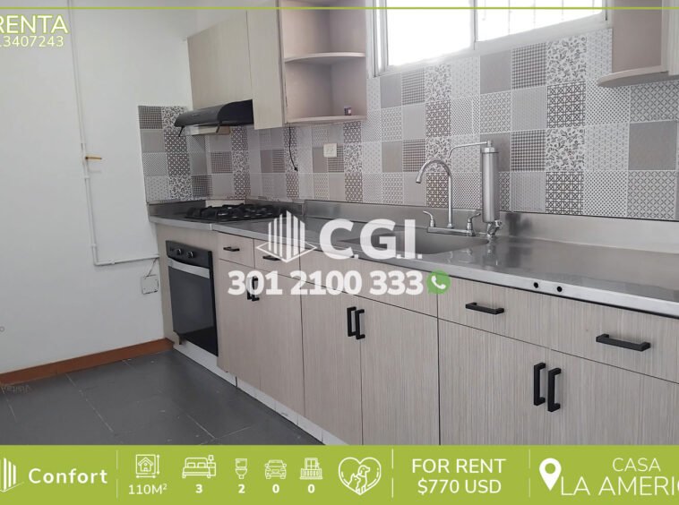 136-07-243 Inmobiliaria en Medellín arrienda acogedora casa ubicada en La América en Medellín, esta cuenta con un área de de 110mts2 distribuidos en sala comedor, cocina integral, zona de ropas, 3 habitaciones, una de ellas con baño privado y baño social. A sus alrededores podemos encontrar La Vaquita de La América, Éxito Laureles, Centro Comercial Los Molinos y rutas de acceso como avenida San Juan, avenida la 80 y amplia variedad de rutas de transporte público. CONFORT GESTORES INMOBILIARIOS – Arriendo en Medellín