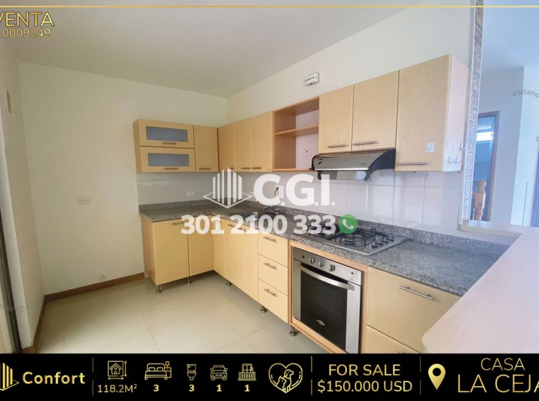100-09-249 Fantástica casa disponible para la venta ubicada en La Ceja, Antioquia. Esta increíble casa cuenta con 118.2m² distribuidos de la siguiente manera: 3 habitaciones, 3 baños, una sala comedor amplia, cocina semi integral, patio interno y balcón. Además, la casa incluye zona de ropas, 2 clósets, 2 baños sociales y 1 privado, cuenta con 1 parqueadero cubierto y calentador de gas; esta se encuentra en unidad cerrada y cuenta con zonas verdes, parque infantil, zona de perros y vigilancia 24/7; La casa esta ubicada en sector tranquilo y seguro, cercano al viva la ceja y al jungla park, con fácil acceso por la vía la ceja- Rionegro y cuenta con gran variedad de transporte publico. CONFORT GESTORES INMOBILIARIOS – Venta en La Ceja