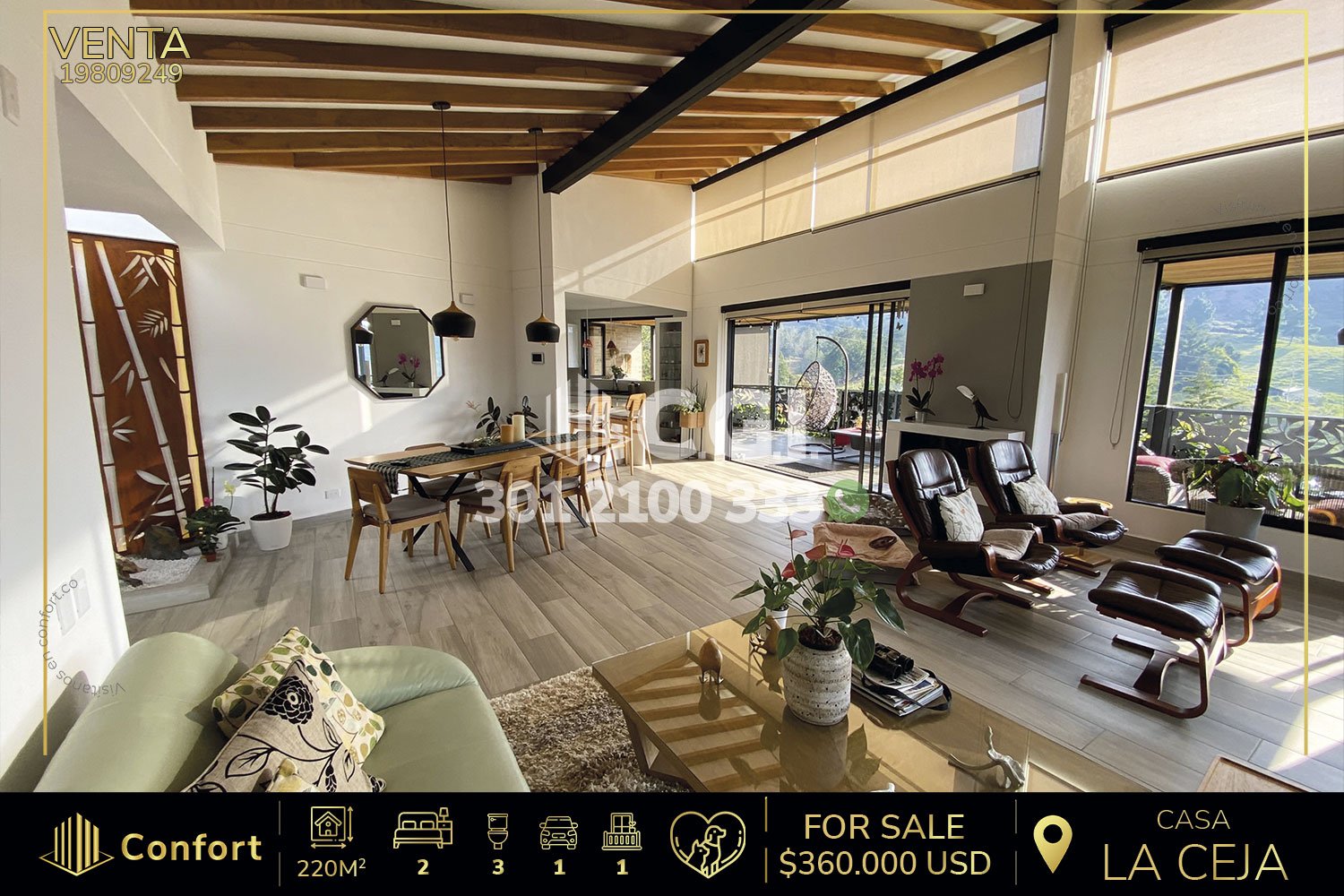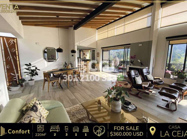 198-09-249 Espectacular casa disponible para la venta ubicada en el tranquilo sector de La Ceja, Antioquia., cuenta con un área total de 1253 m², de los cuales 220 m² están construidos y distribuidos en sala comedor amplia, cocina semi integral, práctica zona de ropas y balcón con sala de estar que permite una buena iluminación, además, cuenta con un baño social, 2 habitaciones con clóset y baño privado y una habitación auxiliar que actualmente funciona como biblioteca, dispone de parqueadero cubierto, zona BBQ y un cuarto útil para almacenamiento adicional. Está equipada con un sistema de calentador de gas y su propio sistema de tratamiento de agua potable, garantizando comodidad y seguridad en todo momento. Con una excelente ubicación, ofrece gran variedad de rutas de transporte público, a sus alrededores se encuentran lugares de interés como la Capilla San Peregrino y el parque de La Ceja, a tan solo 5 minutos en carro y fácil acceso por la vía La Ceja – Medellín. CONFORT GESTORES INMOBILIARIOS – Venta en La Ceja
