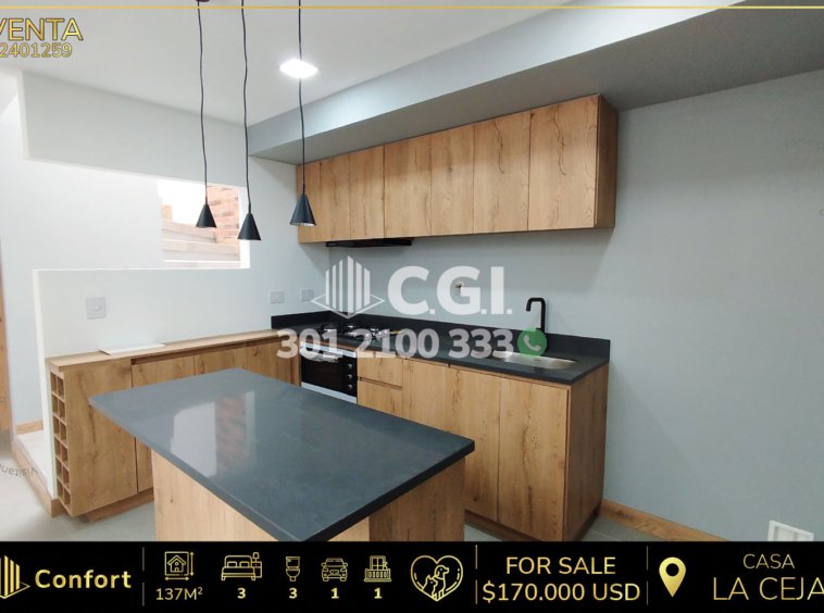 24-01-259 Casa disponible para la venta en La Ceja – Antioquia., cuenta con un área de 137 mts2 distribuidos en sala comedor amplia, cocina integral en isla, patio con zona de ropas, baño social en la primera planta, 3 habitaciones con clóset, una de ellas con balcón, vestier y baño privado, además, cuenta con baño social en la segunda planta y parqueadero. Ubicado en unidad con seguridad privada 24/7 y zonas comunes tales como salón social, juegos infantiles, turco, gimnasio y zonas verdes, a su alrededor podemos encontrar concesionario Renault, vías de acceso como Medellín – La Ceja, Rionegro – La Ceja y amplia variedad de rutas de transporte público. CONFORT GESTORES INMOBILIARIOS – Venta en La Ceja