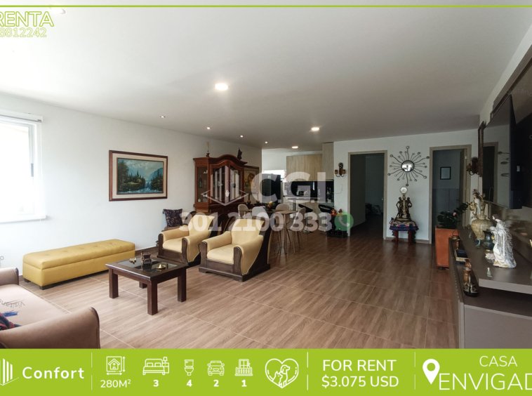 88-12-242 Inmobiliaria en Medellín arrienda casa ubicada en excelente sector de Las Brujas en Envigado, cuenta con un área de 280mt2 distribuidos en sala comedor espaciosa, cocina integral, zona de ropas, 3 habitaciones de excelente tamaño cada una con su respectivo vestier y baño privado, baño social, terraza con balcón, área de estudio, jardín privado, 2 parqueaderos y cuarto útil. Ubicada en urbanización con seguridad 24/7, donde a su alrededor podemos encontrar el centro comercial City Plaza y el hospital Manuel Uribe Ángel, con vías de acceso por la avenida El Poblado, transversal intermedia y gran variedad de rutas de transporte público. CONFORT GESTORES INMOBILIARIOS – Arriendo en Envigado