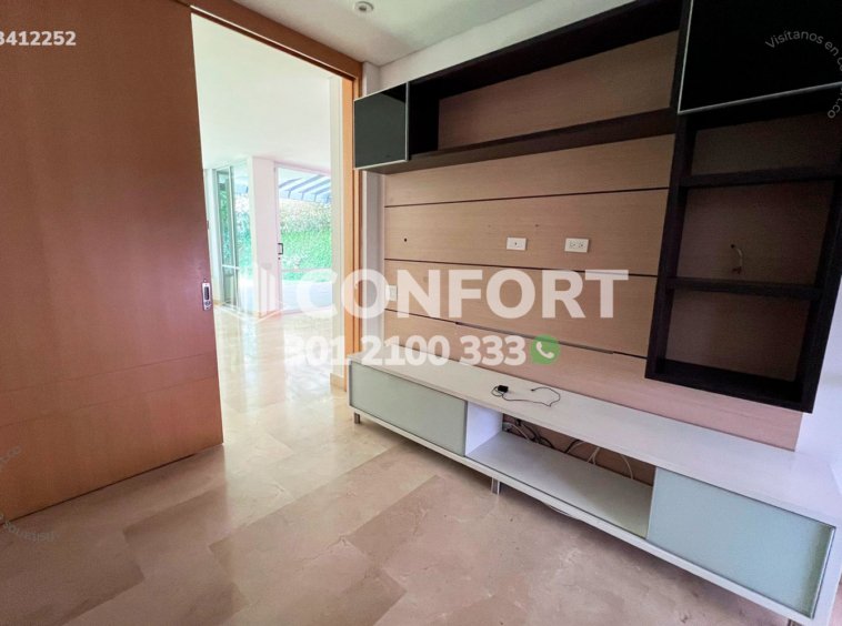 34-12-252 Inmobiliaria en Medellín arrienda casa ubicada en el sector de las Callejas en Envigado. Cuenta con un área de 450mts2 distribuidos en comedor, sala, sala de TV, cocina integral, zona de ropas, habitación de servicio con baño privado, baño social, jardín, deck, lobby de habitaciones, 3 habitaciones, cada una con baño privado y vestier, además la principal cuenta con jacuzzi, 3 parqueaderos y cuarto útil. Ubicado en urbanización con seguridad 24/7 y con zonas de esparcimiento como piscinas, salón social, gimnasio, parque infantil y cancha de fútbol, a su alrededor podemos encontrar el Mall Terracina y el colegio Montessori, con vías de acceso por la transversal intermedia y gran variedad de rutas de transporte público. CONFORT GESTORES INMOBILIARIOS – Arriendo en Envigado