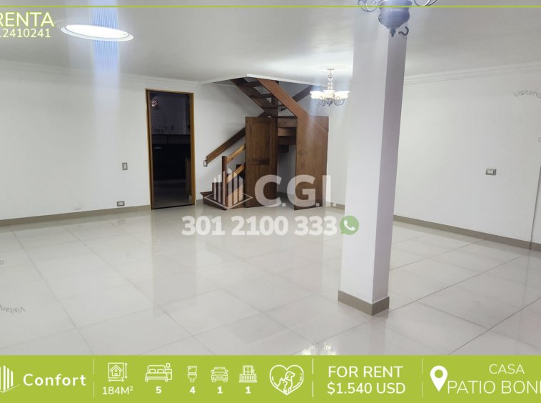 124-10-241 Inmobiliaria en Medellín arrienda casa en Patio Bonito en El Poblado, cuenta con un área de 184mt2 distribuidos en sala comedor, cocina integral, zona de ropas, 5 habitaciones, 2 de ellas con baño privado y 1 con bañera y vestier, habitación de servicio mas baño privado, 2 baños sociales, balcón, sala de estar y parqueadero. Ubicada en unidad con seguridad privada 24/7, donde a su alrededor podemos encontrar el centro comercial Oviedo y el centro comercial Santafé, con vías de acceso como la avenida El Poblado, calle 4 sur y amplia variedad de rutas de trasporte público. CONFORT GESTORES INMOBILIARIOS – Arriendo en El Poblado