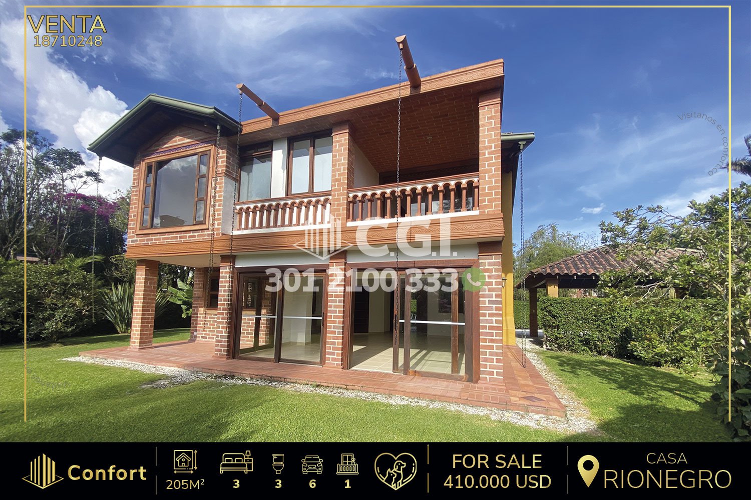 187-10-248 Hermosa propiedad disponible para la venta en Rionegro, Antioquia., cuenta con un área total de 1,017 m² y 205 m² construidos y distribuidos en cocina semi-integral, sala comedor amplia y balcón que proporciona excelente ventilación e iluminación, 3 habitaciones, 2 de ellas con clóset y una con vestier, además de un baño privado, 2 baños sociales, cuarto útil y ofrece amplio espacio para estacionamiento, con 2 parqueaderos cubiertos y 4 descubiertos. A su alrededor podemos encontrar el Criadero Villa Danila y el Estudio Mantra Rosa, con vías de acceso por la Vereda Vilachuaga y variedad de transporte público. CONFORT GESTORES INMOBILIARIOS – Venta en Rionegro