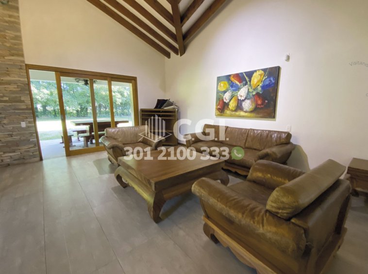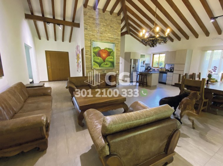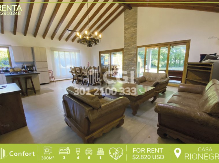 229-10-248 Casa disponible para la renta en Rionegro, Antioquia., cuenta con un área total de 1,500 m², de los cuales 300 m² están construidos y distribuidos en sala comedor amplia con chimenea, cocina integral completamente equipada con lavavajillas y horno, balcón, sala de estar, estudio, 3 habitaciones con baño privado, una de ellas con vestier y dos con clóset, además de una habitación de servicio con baño, 6 parqueaderos, 2 cubiertos, 4 descubiertos, cuarto útil, zona BBQ y licorera. Ubicada en parcelación con seguridad privada 24/7 y zonas comunes tales como salón social, zona infantil, placa polideportiva y zonas verdes, a su alrededor podemos encontrar la Subestación de Policía de Llano Grande y la finca de Rigo, con vías de acceso por el Aeropuerto José María Córdova y Llano Grande, además cuenta con gran variedad de rutas transporte público. CONFORT GESTORES INMOBILIARIOS – Arriendo en Rionegro