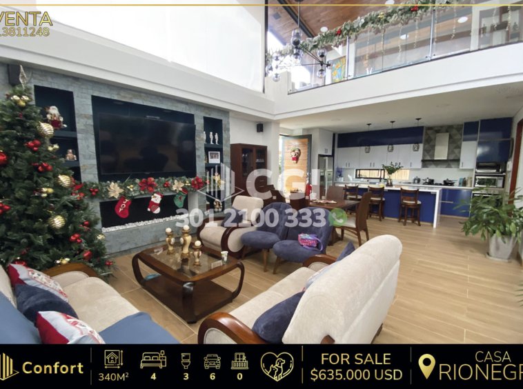 138-11-248 Casa disponible para la venta ubicado en el sector de Rionegro – Antioquia, cuenta con un área de 597 mts2 de los cuales tiene un área construida de 340 mts2 distribuidos en sala comedor con chimenea, cocina integral, zona de ropas, 4 habitaciones, una de ellas con baño privado y vestier, las otras 3 con closet, 2 baños sociales, zona de estudio, sala de estar, 6 parqueaderos, 2 cubiertos y 4 descubiertos, 1 jacuzzi, 1 turco, zona BBQ y cuarto útil. Ubicado en unidad cerrada que cuenta con seguridad privada 24/7 y zonas verdes, a su alrededor podemos encontrar Estudio Mantra Rosa, flores El Trigal y Icon Selections, con vías de acceso por la Vereda Vía Vichaluaga y gran variedad de rutas de transporte público. CONFORT GESTORES INMOBILIARIOS – Venta en Rionegro