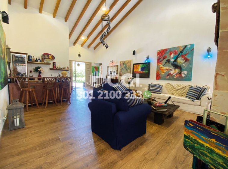 254-10-248 Atractiva casa disponible para la renta en Rionegro, Antioquia., cuenta con un área total de 2150 m² y 460 m² construidos y distribuidos en sala, comedor, cocina integral equipada con campana y lavavajillas, despensa, sala de estar, zona de estudio y 5 habitaciones, 4 de ellas con baño privado, una con jacuzzi, habitación de servicio con su respectivo baño y clóset, 7 parqueaderos y cuarto útil. Ubicado en parcelación con seguridad privada 24/7 y con zonas comunes como zona BBQ y arboles frutales, a su alrededor podemos encontrar la finca de Rigo y el hospital san Vicente Fundación, con vías de acceso por la vía Medellín – Llanogrande y amplia variedad de rutas de transporte. CONFORT GESTORES INMOBILIARIOS – Arriendo en Rionegro