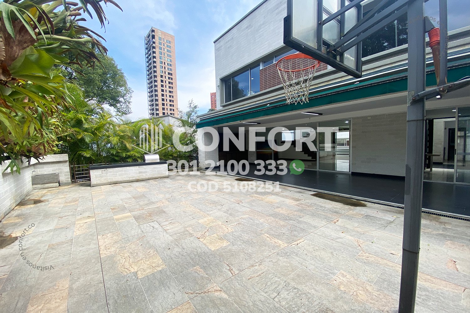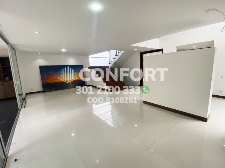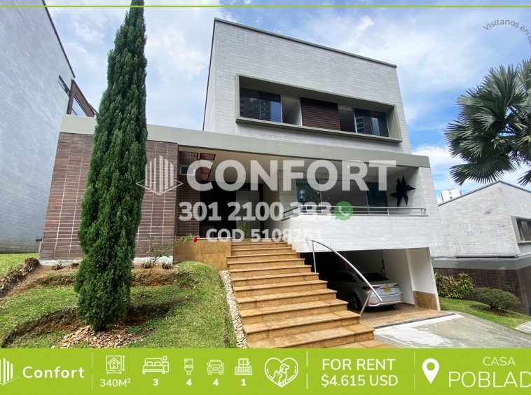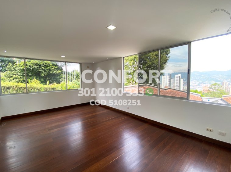 51-08-251 Inmobiliaria en Medellín arrienda casa ubicada en el sector de San Lucas en El Poblado, cuenta con un área de 340mt2 distribuidos en sala, comedor, cocina integral moderna, zona de ropas, 3 habitaciones con baño y vestier, baño social,habitación de servicio con baño privado, amplia terraza con acceso a zona BBQ y cancha de Baloncesto, sala de estar con conexión a amplio balcón, garaje interno para 4 vehículos y cuarto útil. Ubicada en unidad con seguridad privada 24/7 y zonas comunes como piscina, salón social, juegos infantiles, cancha de mini golf y zonas verdes, a su alrededor podemos encontrar complex Los Balsos, San Lucas Plaza, vías de acceso por la transversal superior, calle 18a sur y gran variedad de transporte público. CONFORT GESTORES INMOBILIARIOS – Arriendo en El Poblado