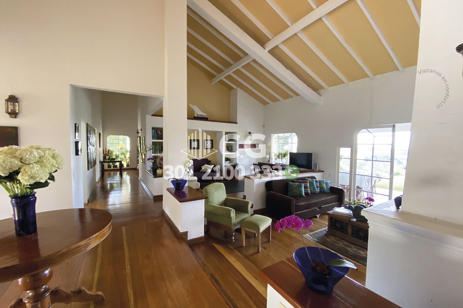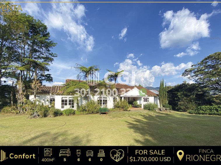 140-08-248 Inmobiliaria en Medellín vende extraordinaria finca amoblada para estrenar ubicada en Rionegro. Cuenta con un extenso lote de 65,000 m², con 400 m² construidos, distribuidos en 2 casas, la principal cuenta con 4 amplias habitaciones, además de una habitación adicional para el servicio, la finca cuenta con 5 baños, uno de ellos compartido y un baño social adicional, está equipada con 2 salas, un comedor, 2 grandes ventanales que permiten una excelente iluminación natural y chimenea, con 5 clósets, 3 vestier, y cocina semi-integral. Los exteriores de la finca son un verdadero paraíso verde, con amplios jardines y zonas verdes que invitan al descanso y la tranquilidad, con varias parcelas cultivadas, casa para mayordomo y 6 parqueaderos. A sus alrededores se encuentran lugares de interés como el Centro De Formación Vid, Cerro Capiro y con fácil acceso por la vía La Ceja – Rionegro y amplia variedad de rutas de transporte. CONFORT GESTORES INMOBILIARIOS – Venta en Rionegro