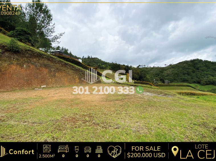 109-08-249 Lote con hermosas vistas para la venta en la Ceja, Antioquia, ubicado en parcelación privada, con un área de 2.500mts2, listo para construir, el lote cuenta con rieles de acceso construidos, cuenta con zonas verdes a sus alrededores en un muy tranquilo sector, la parcelación cuenta con vigilancia 24/7 y con instalación de agua propia, cercana al mirador de la Quinta Porra y a tan solo 2 minutos de la ceja en carro; Además, cuenta con ruta de acceso por la vía Medellín – la ceja. CONFORT GESTORES INMOBILIARIOS – Venta en la Ceja