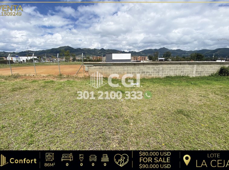115-09-249 Lotes disponibles para la venta en La Ceja, Antioquia., con un área desde los 86mts2 hasta los 170mts2 distribuidos en amplias zonas verdes, perfectas para construir. Ubicados en unidad cerrada con seguridad privada 24/7 y zonas comunes tales como piscina, parque infantil, cancha de fútbol y gimnasio, a sus alrededores podemos encontrar el Viva de La Ceja y el Mall Ciudad Jardín, además, cuenta con rutas de acceso por la vía La Ceja – La unión y amplia variedad de rutas de transporte público. CONFORT GESTORES INMOBILIARIOS – Venta en La Ceja