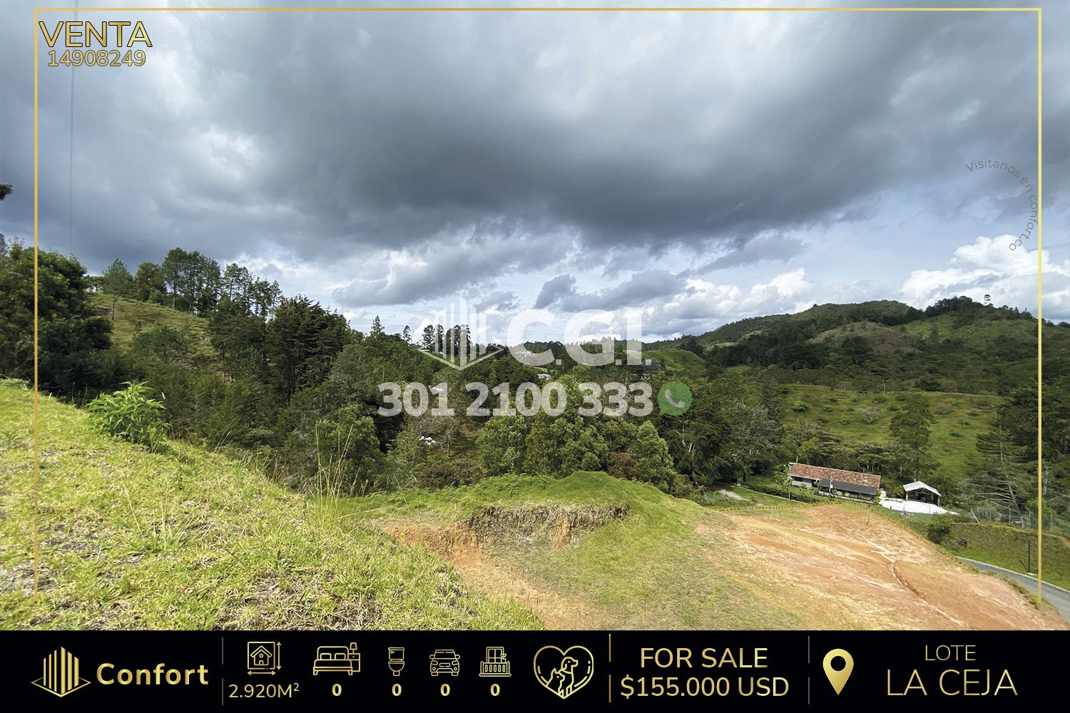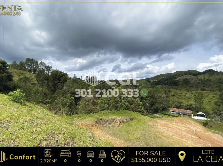 149-08-249 Inmobiliaria en Medellín vende excelente lote con hermosas vistas en la Ceja, Antioquia. Con un área de 2.920mts2, totalmente nuevo para construir, cuenta con zonas verdes a sus alrededores en un muy tranquilo sector, ubicado en parcela que cuenta con control de acceso y con instalación de agua y luz propia, cercana a la Institución Educativa Rural Dolores e Ismael Restrepo y de La Ceja, con rutas de acceso por La vía Don Diego – La Ceja. CONFORT GESTORES INMOBILIARIOS – Venta en La Ceja