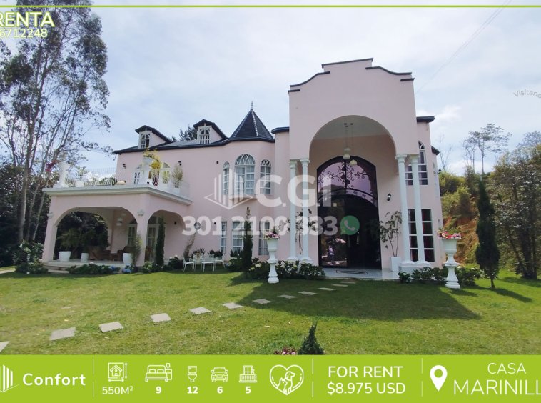 67-12-248 Casa disponible para la renta ubicado en el sector de Marinilla – Antioquia, cuenta con un área de 2000 mts2 de los cuales 550mts están construidos y distribuidos en sala, comedor, sala de estar amplia, terraza, 9 habitaciones, casa una de ellas con baño privado, 3 baños sociales, habitación del servicio con su baño privado, parqueadero con capacidad para 25 vehículos, cuarto útil y caballeriza. Ubicado en unidad cerrada que cuenta con zonas verdes y jardines, a su alrededor podemos encontrar restaurante y asados La Cascada y escuela La Esmeralda, con vías de acceso por Medellín – Bogotá, Rionegro – Marinilla y gran variedad de rutas de transporte público. CONFORT GESTORES INMOBILIARIOS – Arriendo en Marinilla