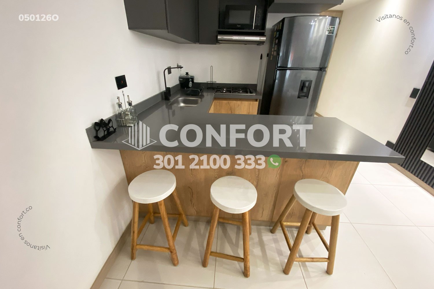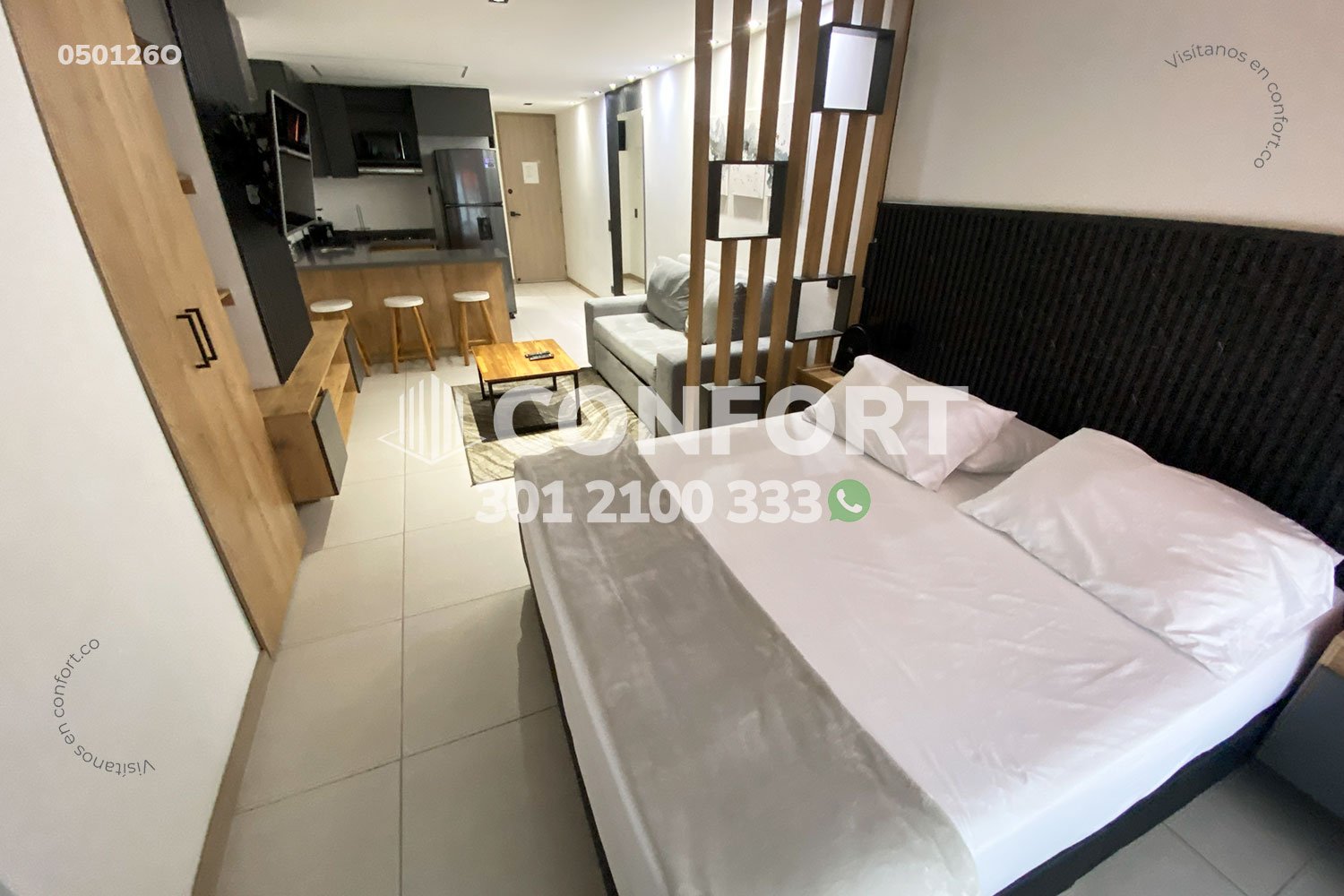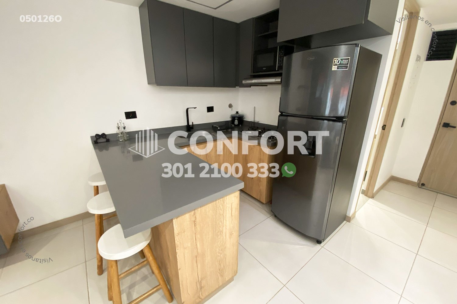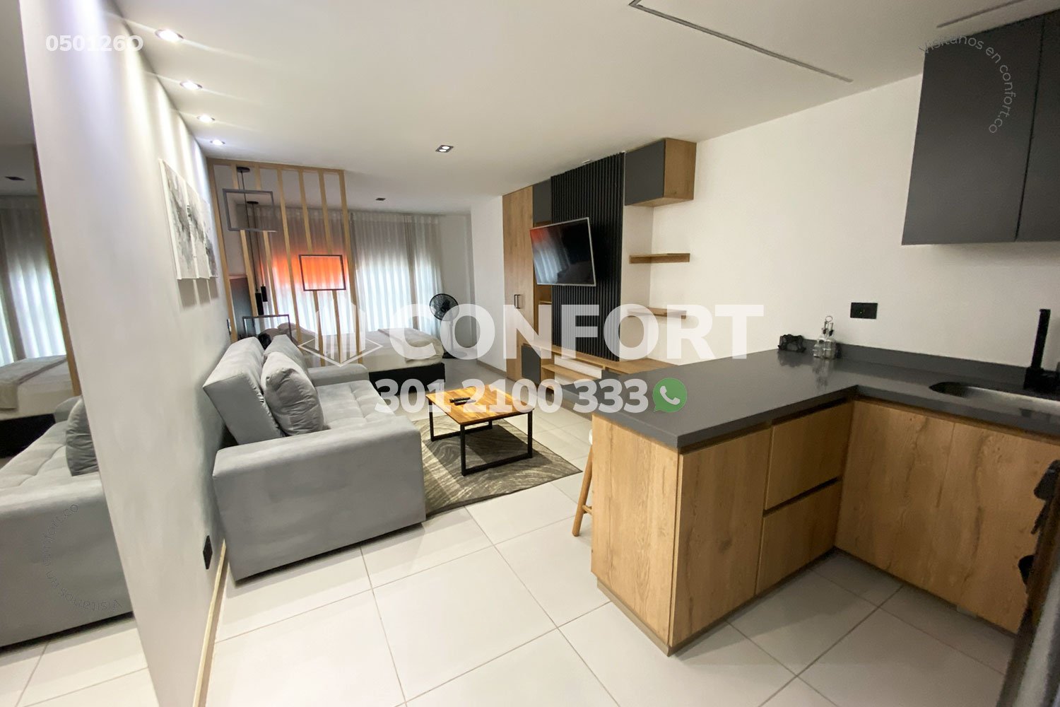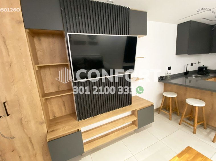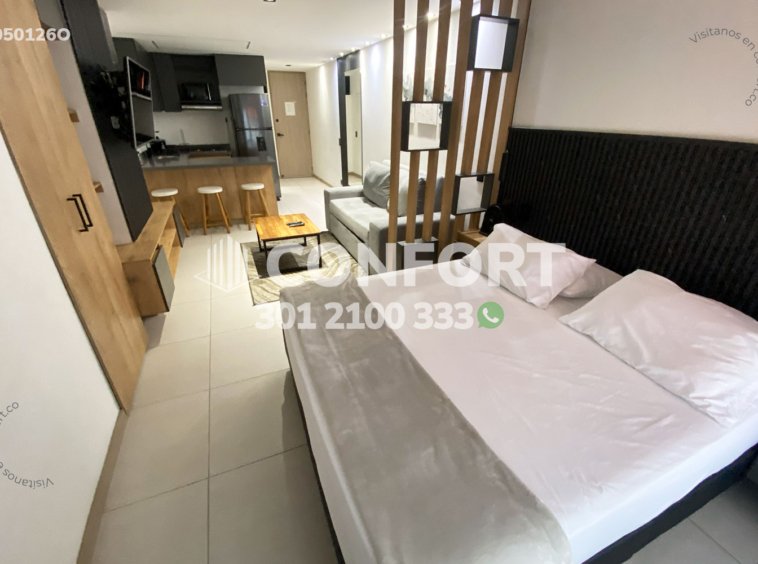 05-01-26O Inmobiliaria en Medellín arrienda oficina amoblado en el sector de Laureles en Medellín. Cuenta con un área de 32mt2 y una altura de 2.45mts, adecuada con una cama doble ideal para el descanso, cocina integral con barra americana, sala de estar con televisor y sofá. Ubicada en edificio con ascensor, cerca al centro comercial los Molinos, parque de Belén, con vías de acceso por avenida 3, Avenida 80 y gran variedad de rutas de transporte público. CONFORT GESTORES INMOBILIARIOS – Arriendo en Medellín