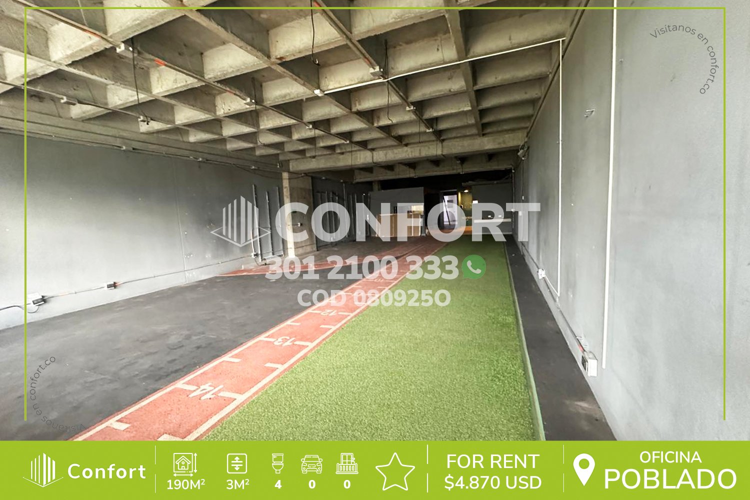 08-09-25O Inmobiliaria en Medellín arrienda oficina, ubicada en Ciudad del Rio, sector el Poblado, con un área de 190mt2, altura de 3mt2 y energía monofásica con una capacidad de 220 kw. Cuenta con 4 baños sociales, espacios amplios e iluminados. Ideal para empresas que busquen una ubicación privelegiada e integrar estaciones de servicio, oficinas y sala de reuniones. A su alrededor podemos encontrar el Centro Comercial Punto Clave y el Museo de Arte Moderno. Vías de acceso por la Avenida las Vegas. Con gran variedad de puntos comerciales y transporte público. CONFORT GESTORES INMOBILIARIOS – Arriendo en Poblado